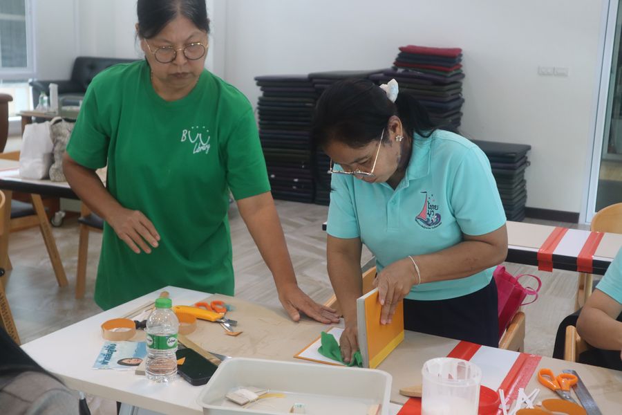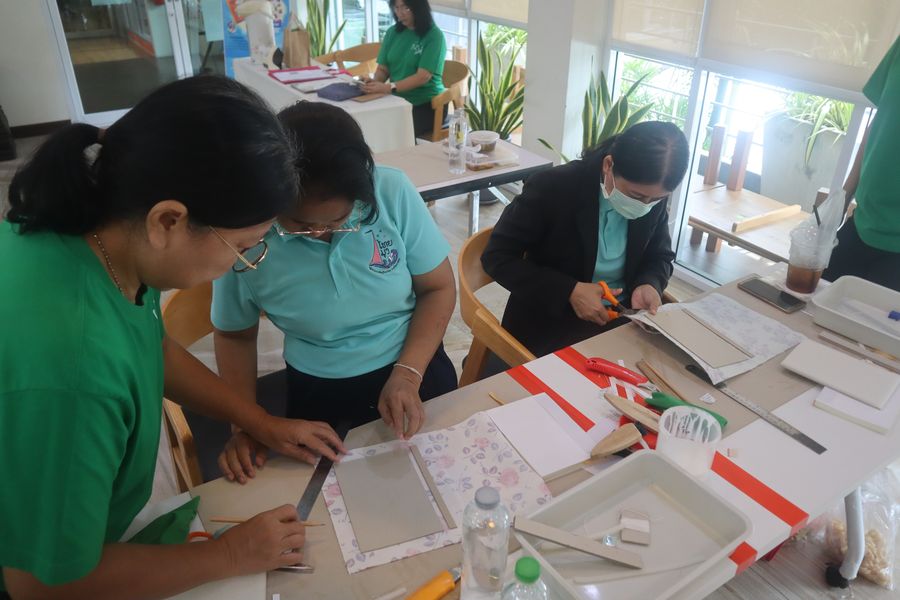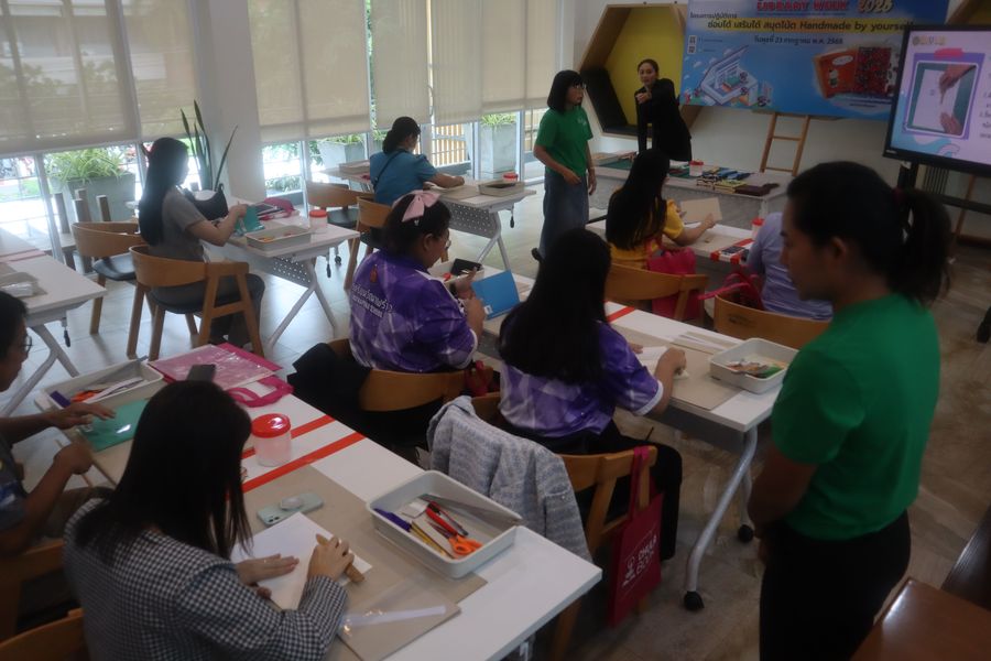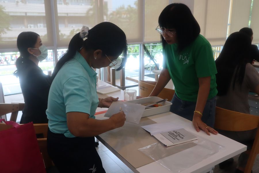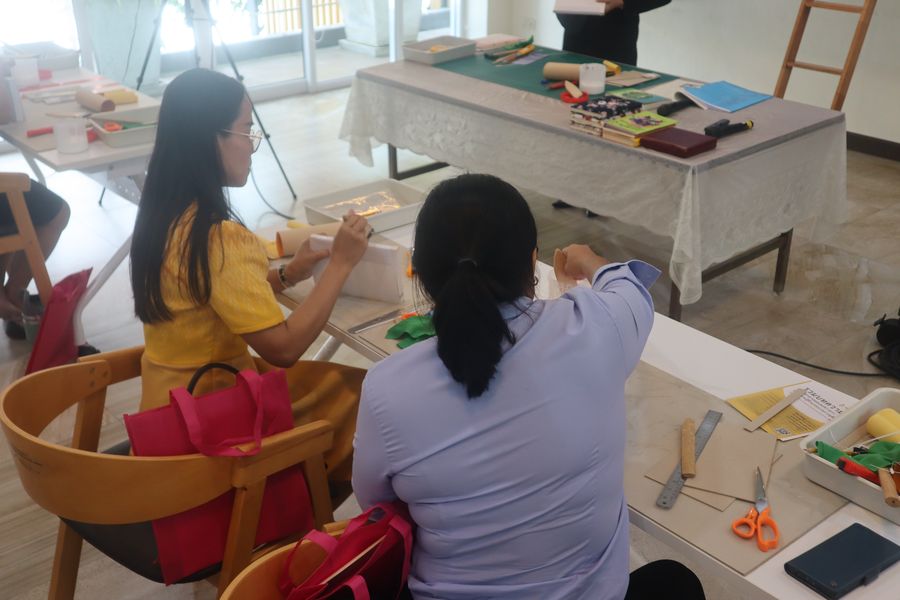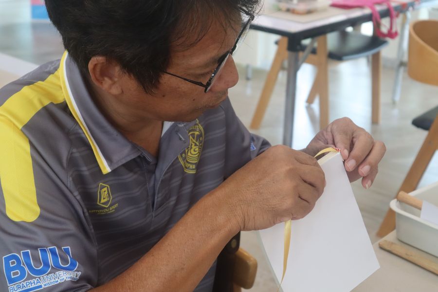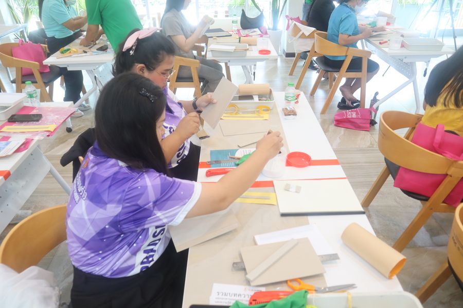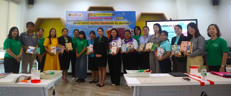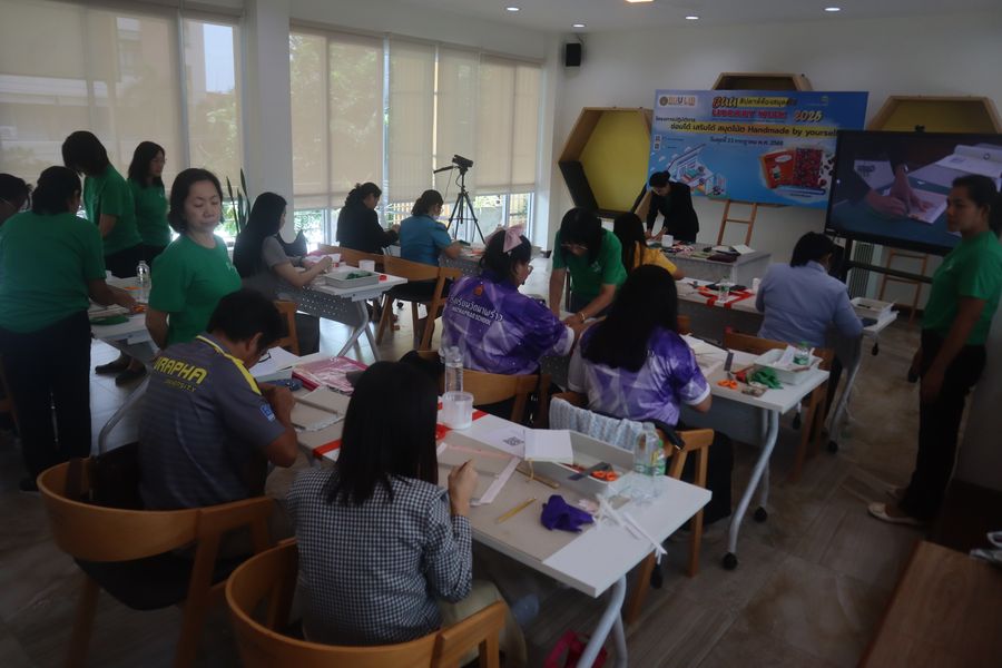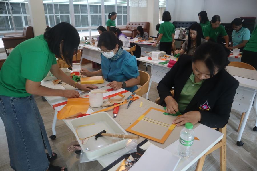 Burapha University Library, led by Mr. Hemmarat Wachirahattapong, the Director of the BUU Library, presided over the opening of the Workshop on “Repairable, Extendable: Handmade Notebook by Yourself.” The workshop was conducted by the library’s expert team from Burapha University. The event took place on July 23, 2025, at Khao Lam Game Zone on the 2nd floor at Lan Rommanee Building of the library.