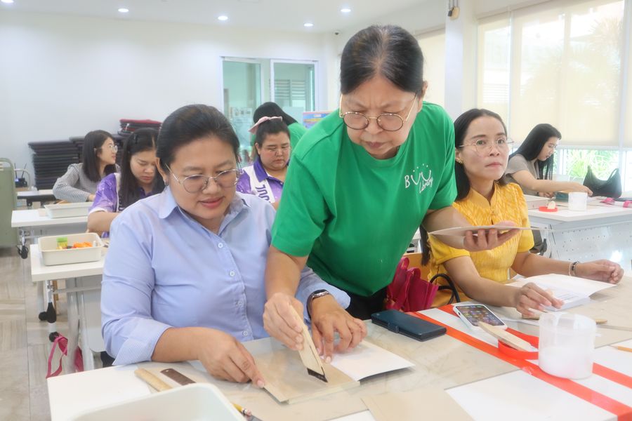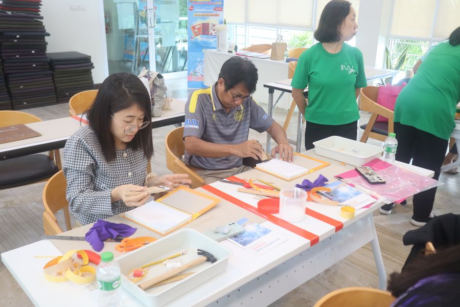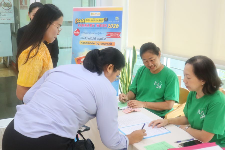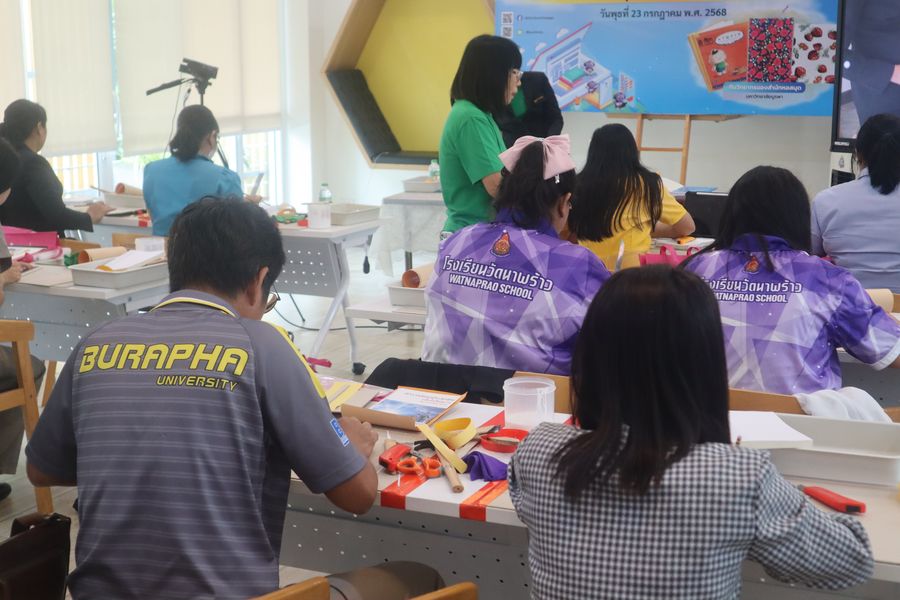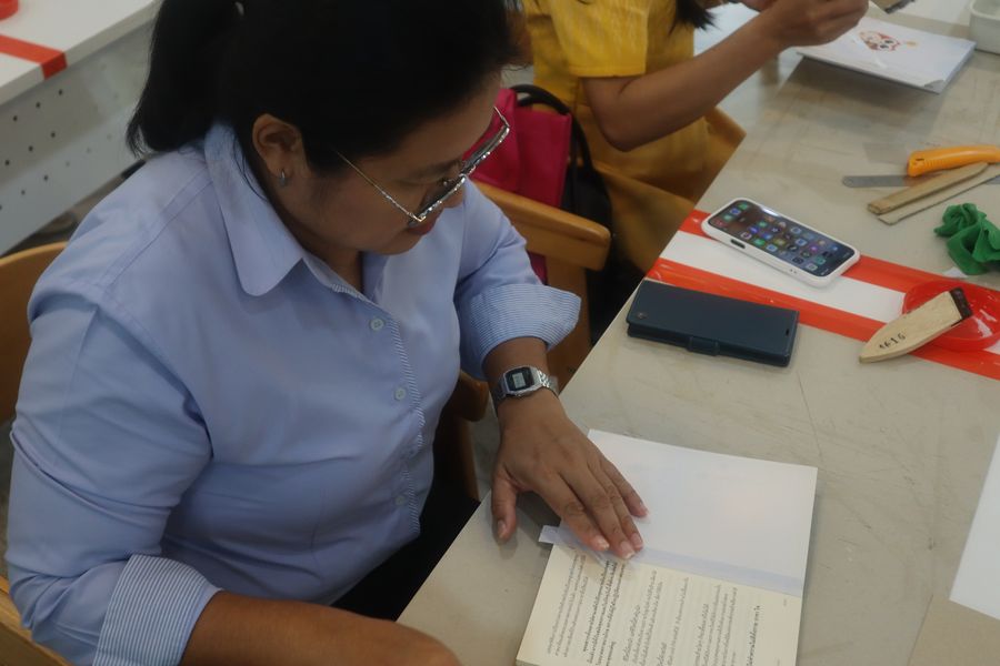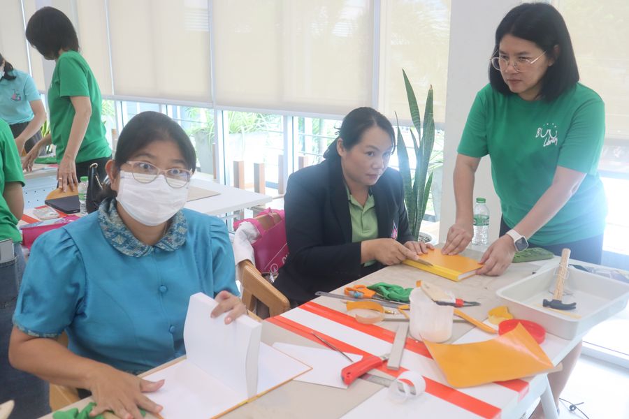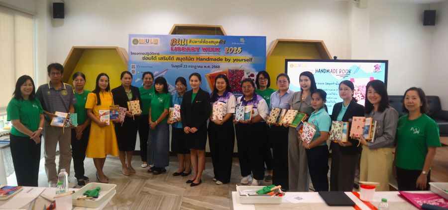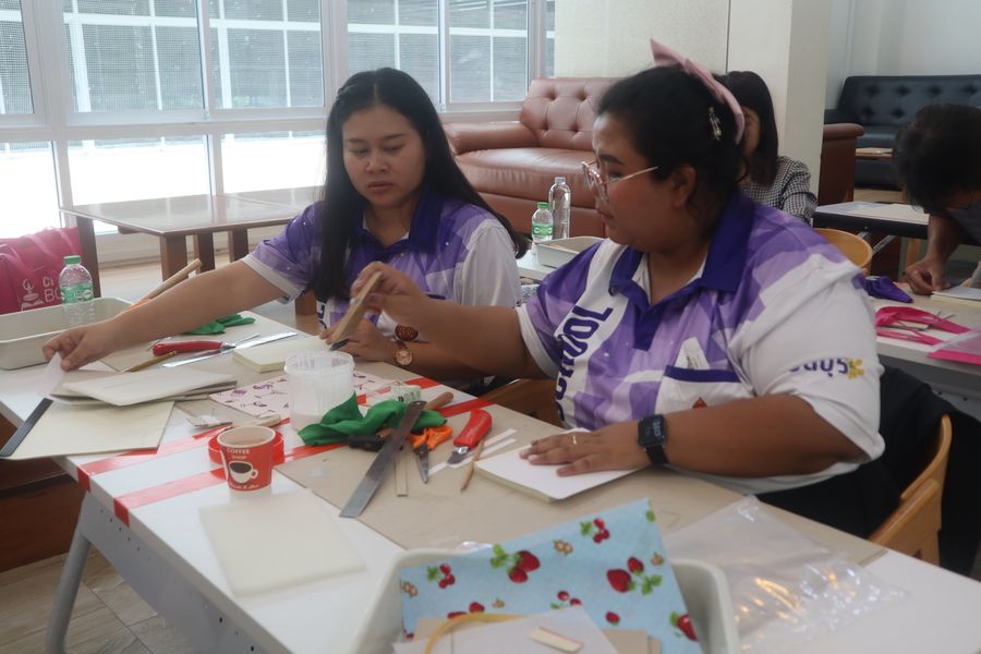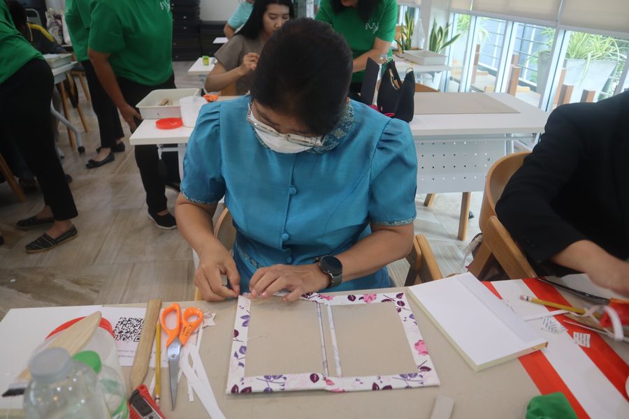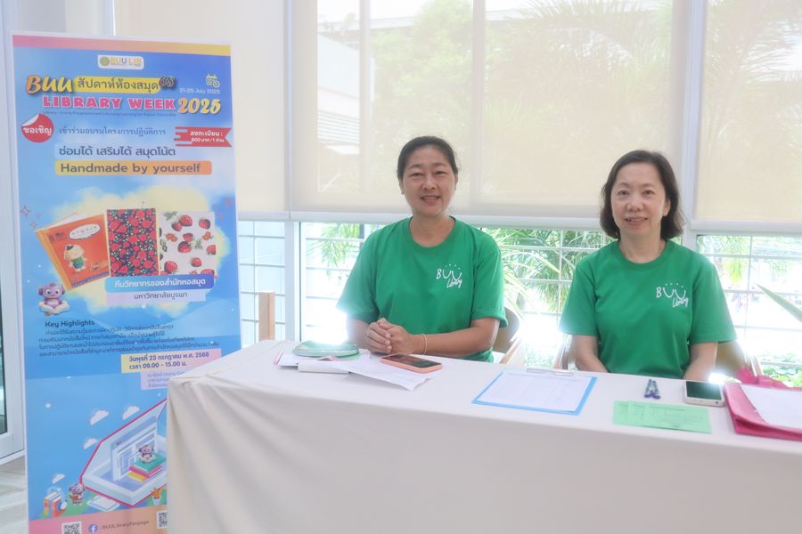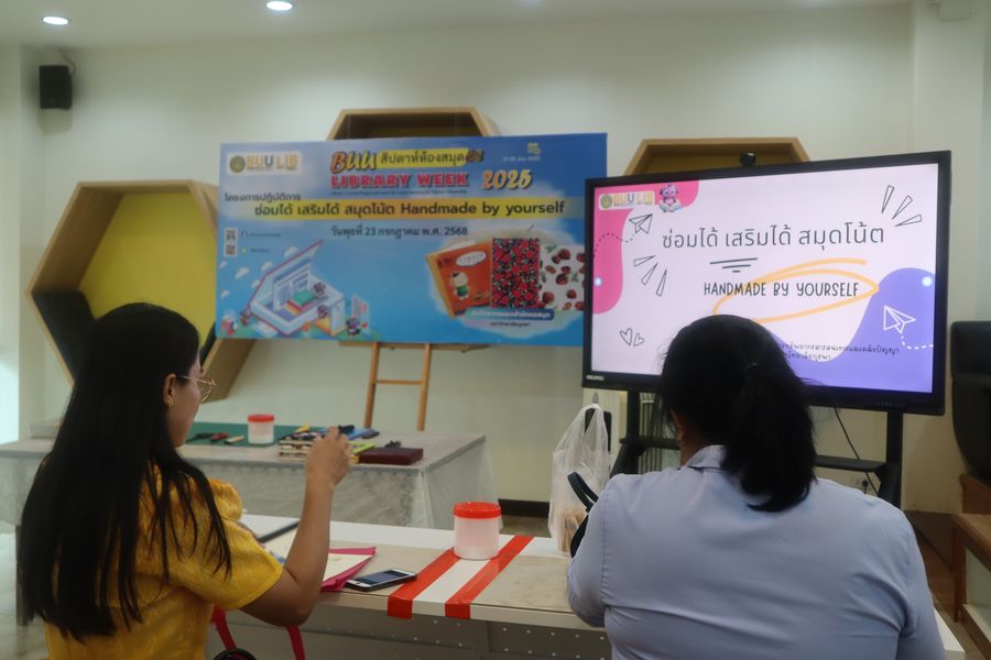 Burapha University Library, led by Mr. Hemmarat Wachirahattapong, the Director of the BUU Library, presided over the opening of the Workshop on “Repairable, Extendable: Handmade Notebook by Yourself.” The workshop was conducted by the library’s expert team from Burapha University. The event took place on July 23, 2025, at Khao Lam Game Zone on the 2nd floor at Lan Rommanee Building of the library.