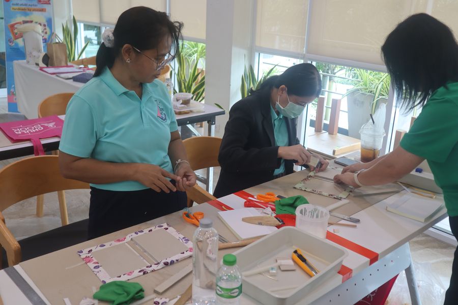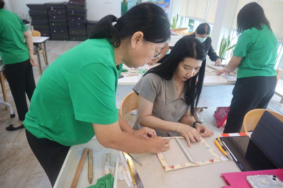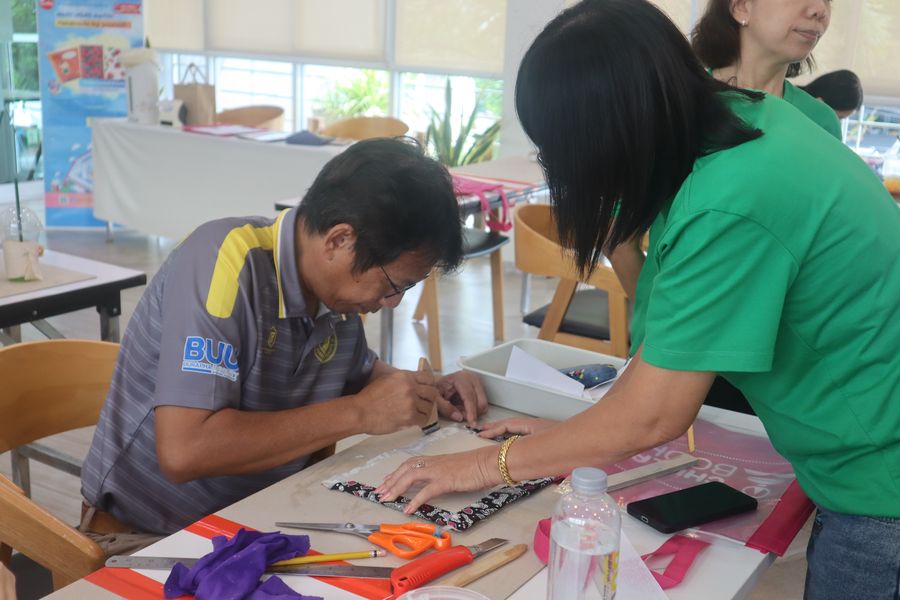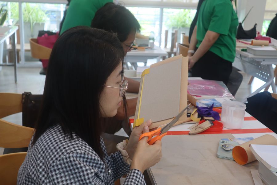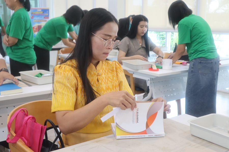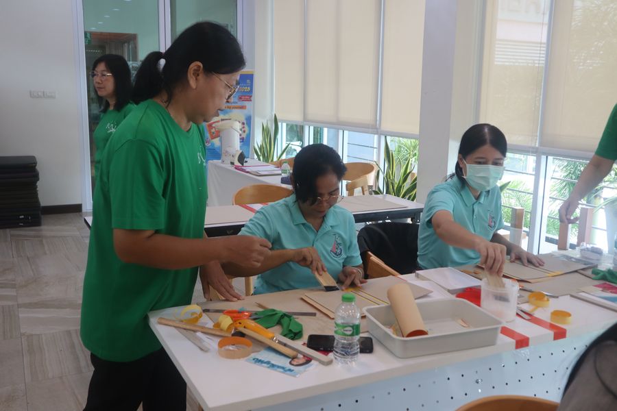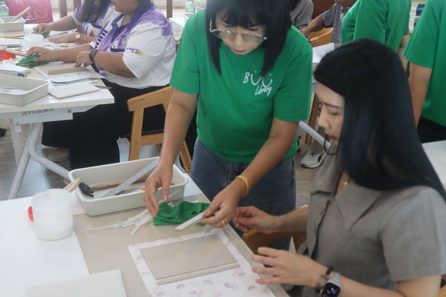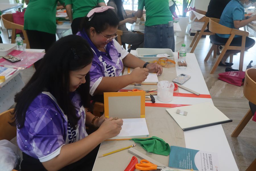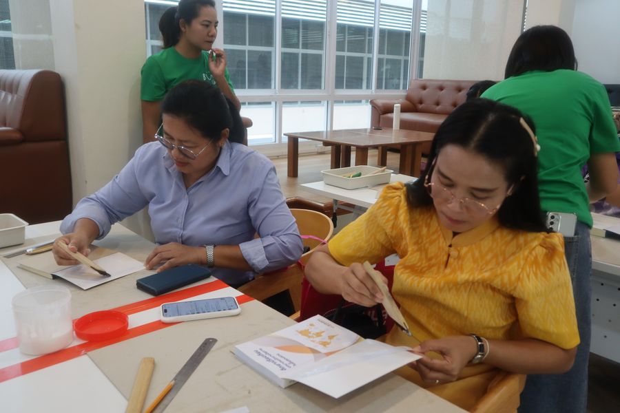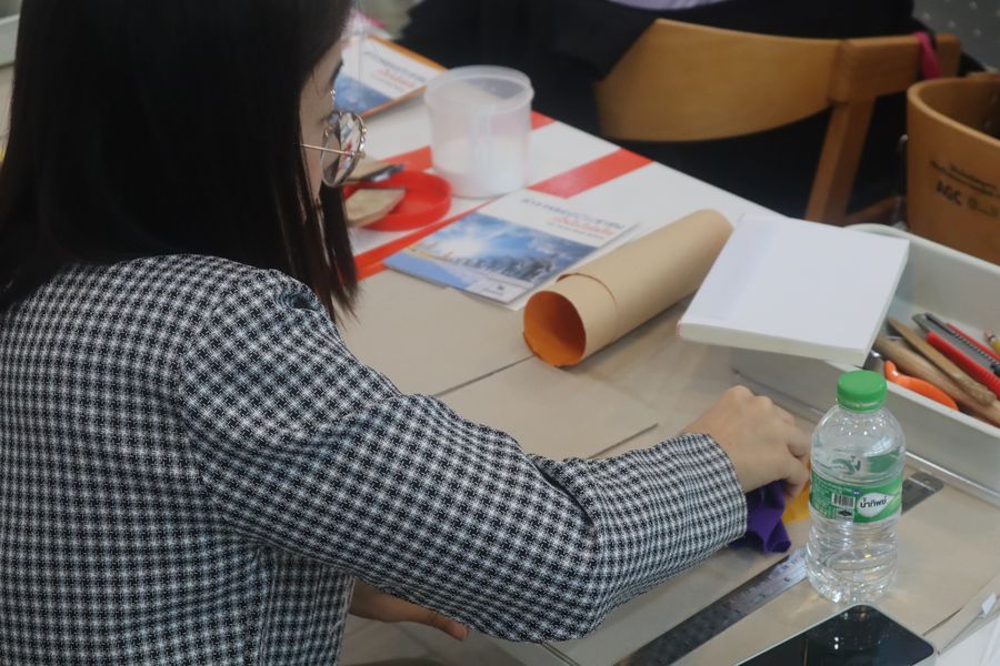 Burapha University Library, led by Mr. Hemmarat Wachirahattapong, the Director of the BUU Library, presided over the opening of the Workshop on “Repairable, Extendable: Handmade Notebook by Yourself.” The workshop was conducted by the library’s expert team from Burapha University. The event took place on July 23, 2025, at Khao Lam Game Zone on the 2nd floor at Lan Rommanee Building of the library.