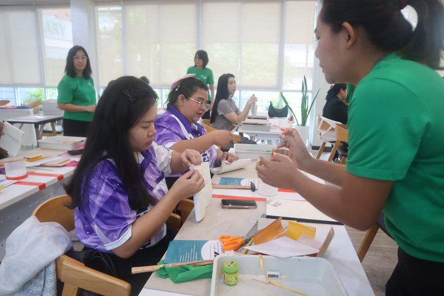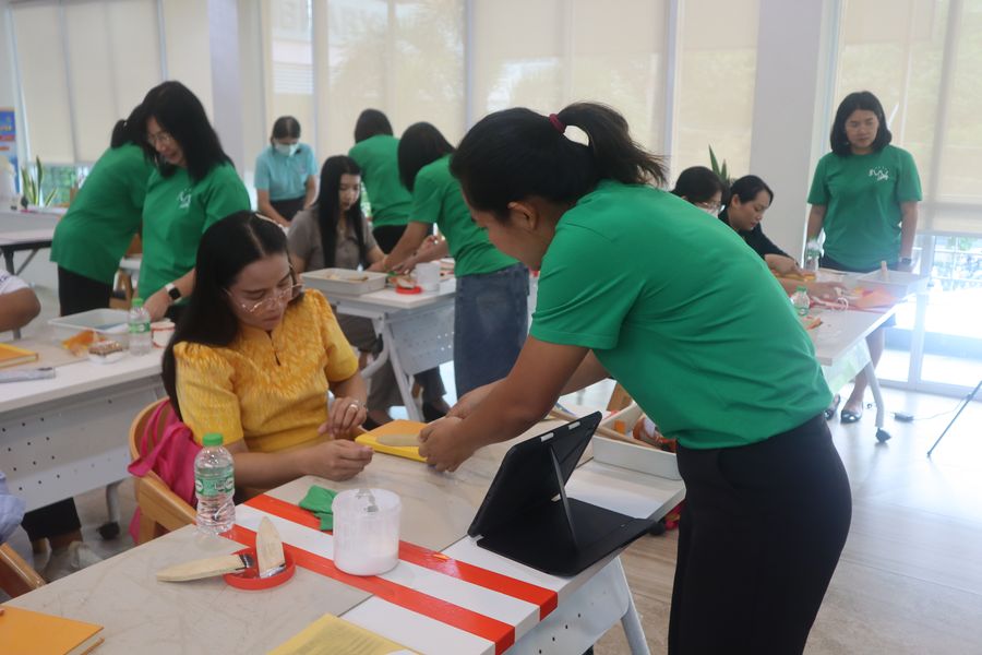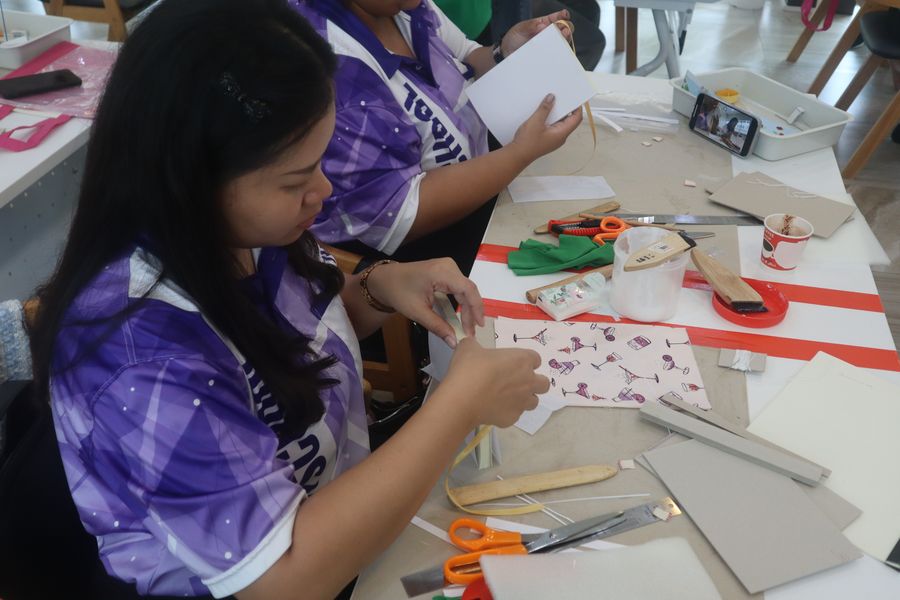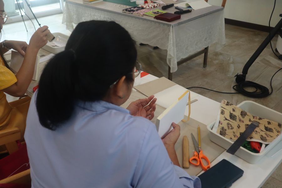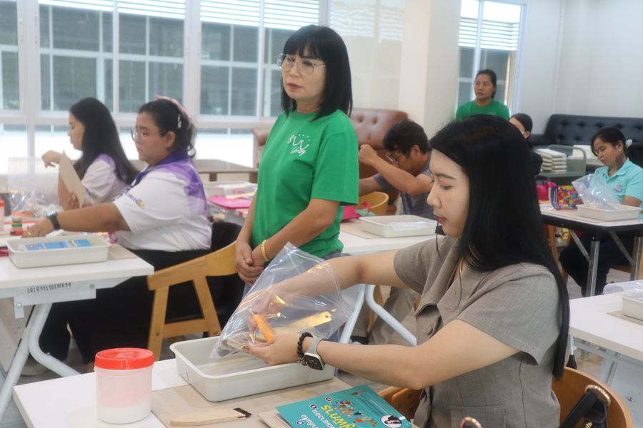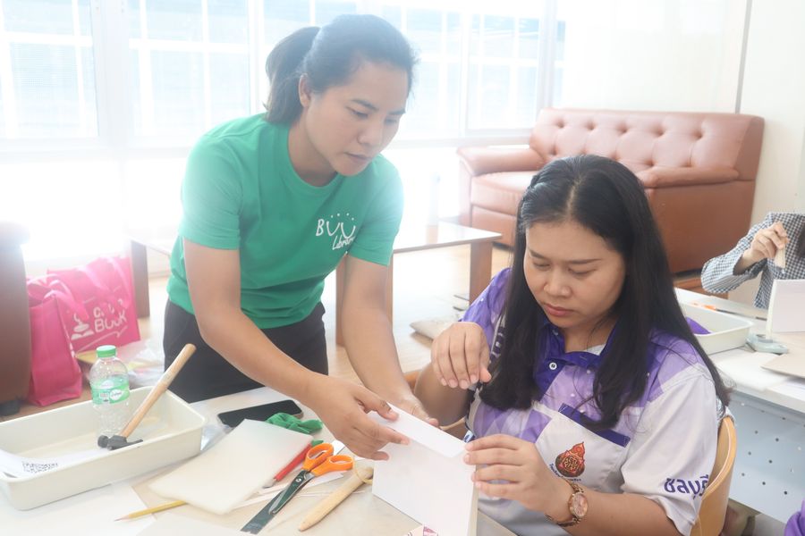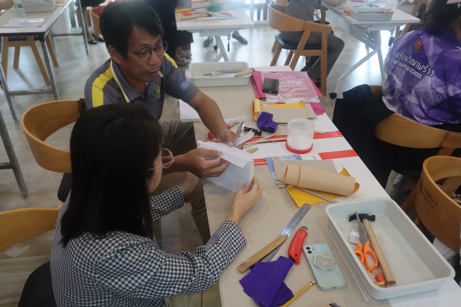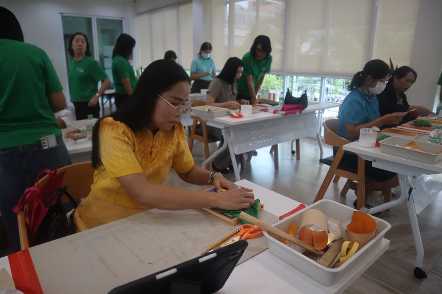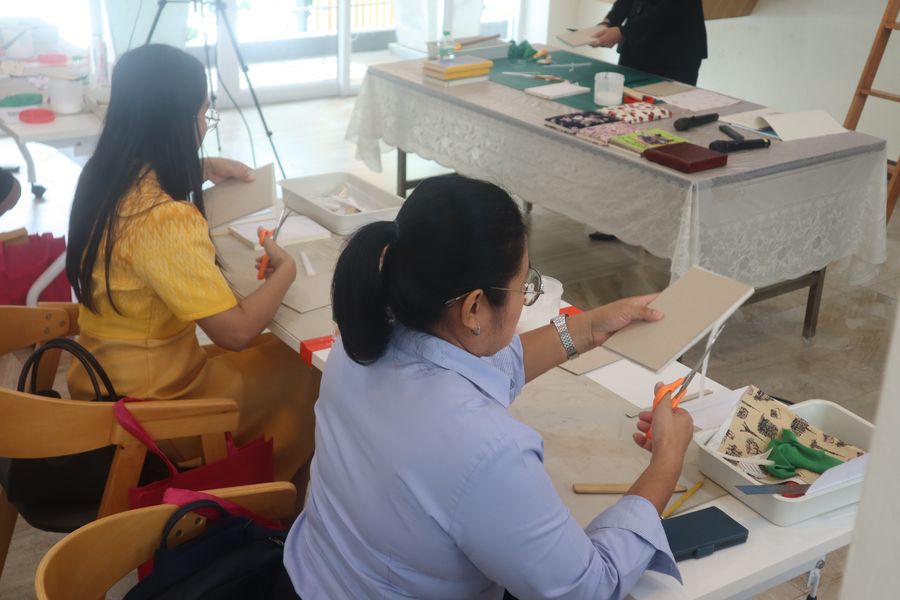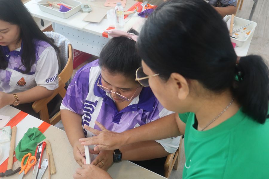 Burapha University Library, led by Mr. Hemmarat Wachirahattapong, the Director of the BUU Library, presided over the opening of the Workshop on “Repairable, Extendable: Handmade Notebook by Yourself.” The workshop was conducted by the library’s expert team from Burapha University. The event took place on July 23, 2025, at Khao Lam Game Zone on the 2nd floor at Lan Rommanee Building of the library.