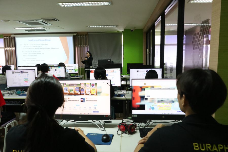A total of 90 first-year undergraduate students from the Biology program, Faculty of Science, participated in a training session on techniques for searching academic articles through electronic databases, as well as the use of EndNote for reference and bibliography management. The training was held on Thursday, March 26, 2026, at Cyber Zone I on the 6th floor of the library.