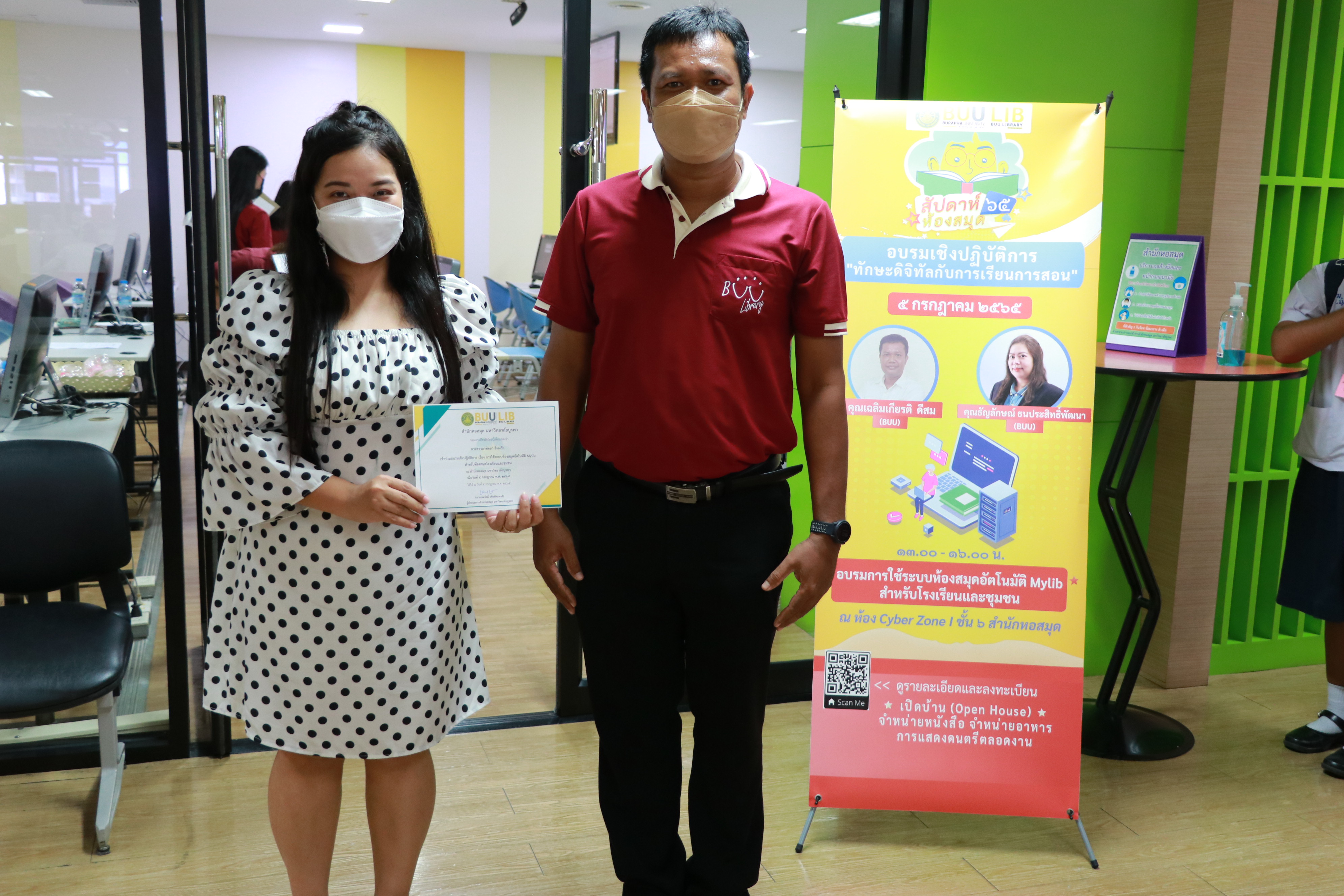 วิทยากร: นายเฉลิมเกียรติ ดีสม นักวิชาการคอมพิวเตอร์ชำนาญการ และนางสาวธัญลักษณ์ ธนประสิทธิ์พัฒนา บรรณารักษ์ชำนาญการ สำนักหอสมุด มหาวิทยาลัยบูรพา