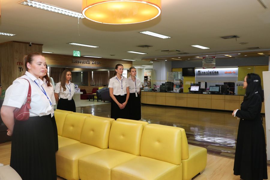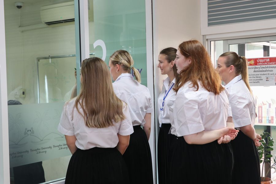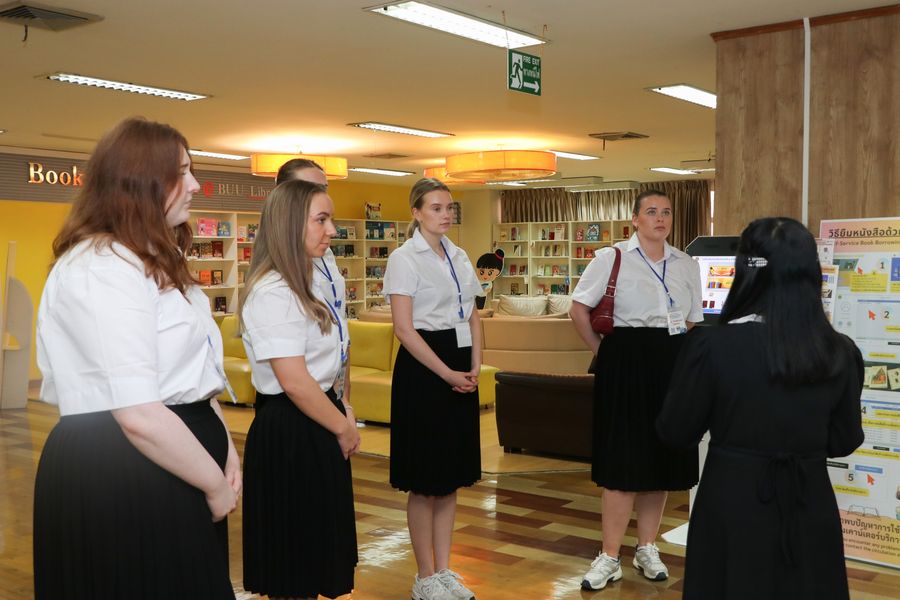 สำนักหอสมุด มหาวิทยาลัยบูรพา ให้การต้อนรับนิสิตจาก Norwegian University of Science and Technology ประเทศนอร์เวย์ จำนวน 5 คน เข้าเยี่ยมชมพื้นที่บริการของสำนักหอสมุด