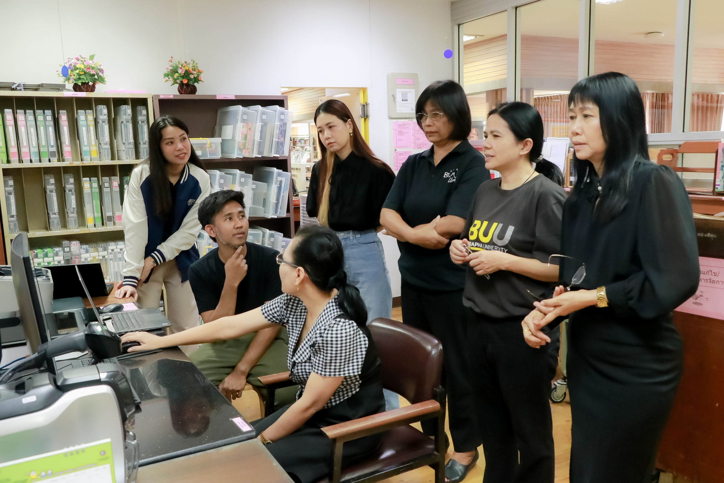 ผู้บริหารและบุคลากรสำนักหอสมุด มหาวิทยาลัยบูรพา ให้การต้อนรับบุคลากรจากหอสมุด