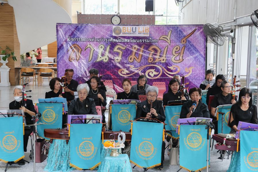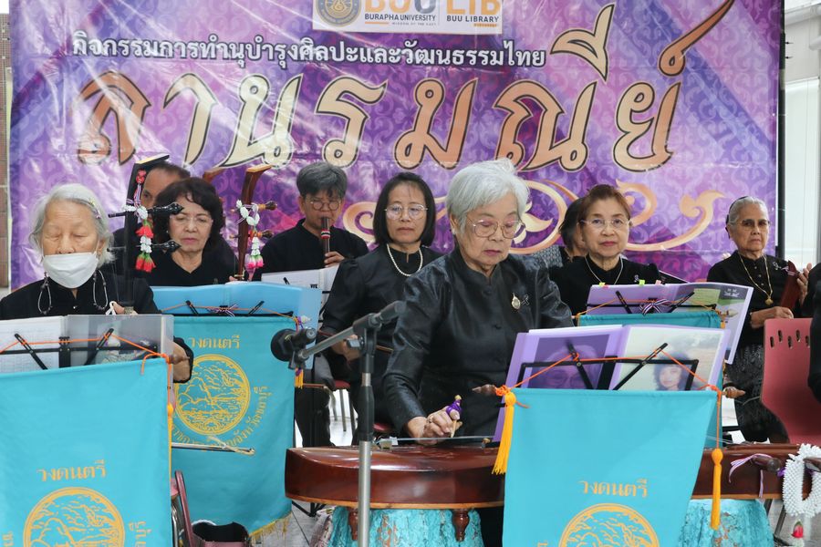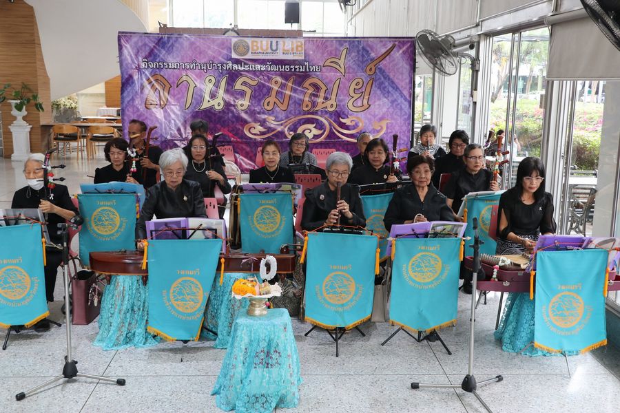สำนักหอสมุดจัดกิจกรรมการบรรเลงและขับร้องดนตรีไทย โดยชมรมข้าราชการบำนาญจังหวัดชลบุรี ได้มาร่วมถ่ายทอดและแสดงดนตรี เป็นการอนุรักษ์ดนตรีไทย กิจกรรมที่ปลูกฝังและสร้างแรงบันดาลใจ ตลอดจนสร้างทัศนคติที่ดีให้แก่นิสิตในการอนุรักษ์ดนตรีไทยอันเป็นมรดกทางวัฒนธรรมที่สำคัญของประเทศให้คงอยู่สืบไป เมื่อวันที่ 20 พฤศจิกายน พ.ศ. 2568 ณ ห้องโถงนิทรรศการ ชั้น 1 สำนักหอสมุด มหาวิทยาลัยบูรพา