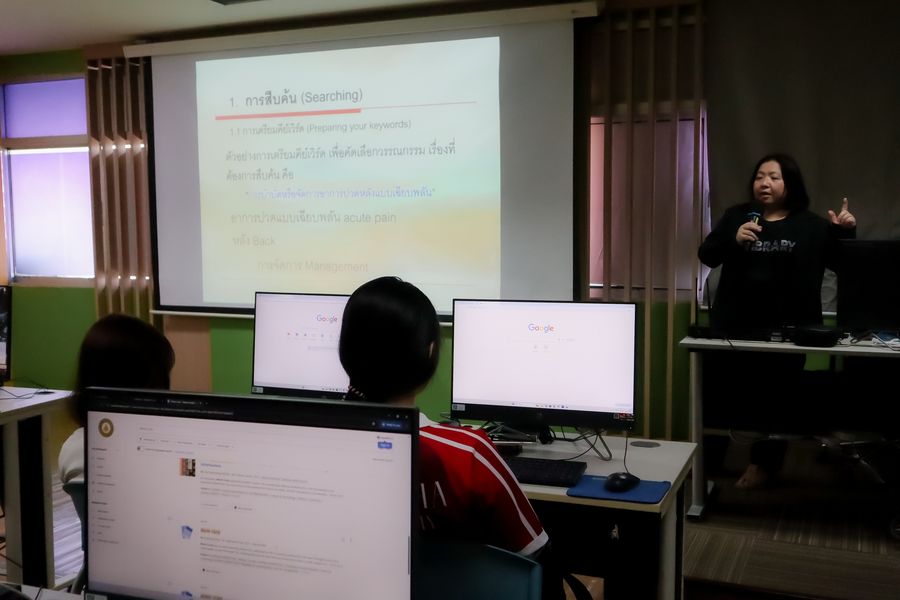 สำนักหอสมุด จัดอบรมการสืบค้นสารสนเทศและการจัดการบรรณานุกรม ให้กับนิสิตสาขาวิชาภาษาฝั่งเศส ชั้นปีที่ 1 คณะมนุษยศาสตร์และสังคมศาสตร์ จำนวน 60 คน เมื่อวันที่ 12 มกราคม 2569 ณ ห้อง Cyber Zone I ชั้น 6 สำนักหอสมุด