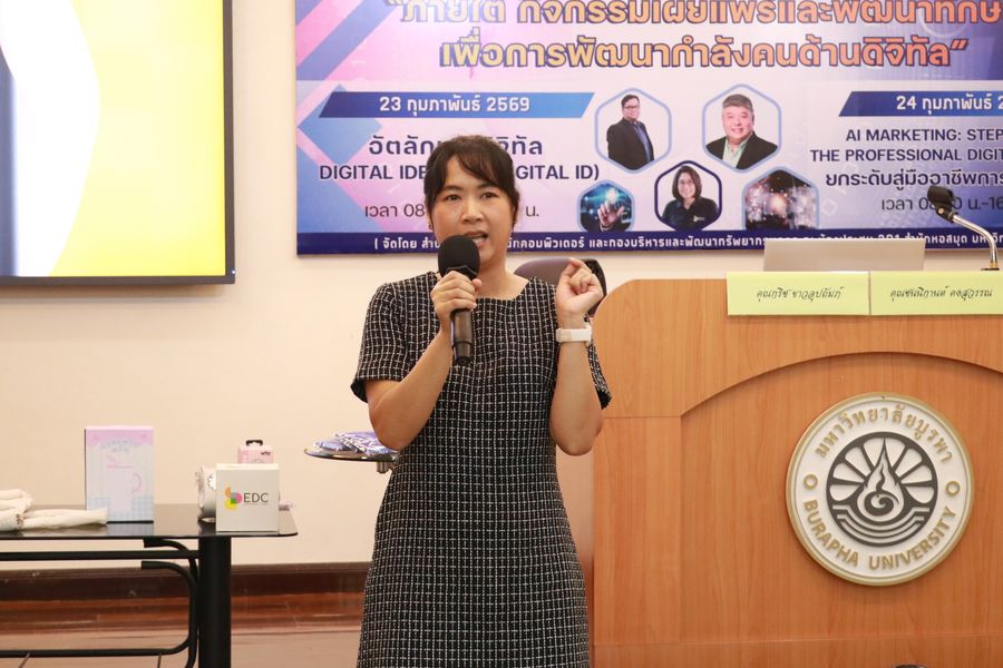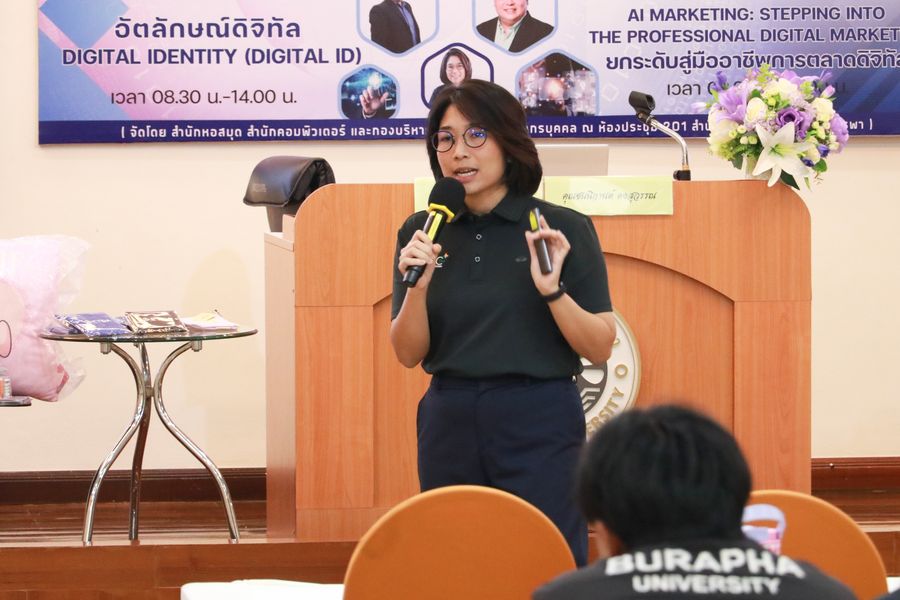 จากความร่วมมือกันระหว่างสำนักงานพัฒนาธุรกรรมทางอิเล็กทรอนิกส์ (ETDA) และมหาวิทยาลัยบูรพา (สำนักหอสมุด, สำนักคอมพิวเตอร์ และกองบริหารและพัฒนาทรัพยากรบุคคล) ในหัวข้อการอบรมเรื่อง “อัตลักษณ์ดิจิทัล (Digital Identity)” โดยวิทยากร คุณชนนิกานต์ คงสุวรรณ
