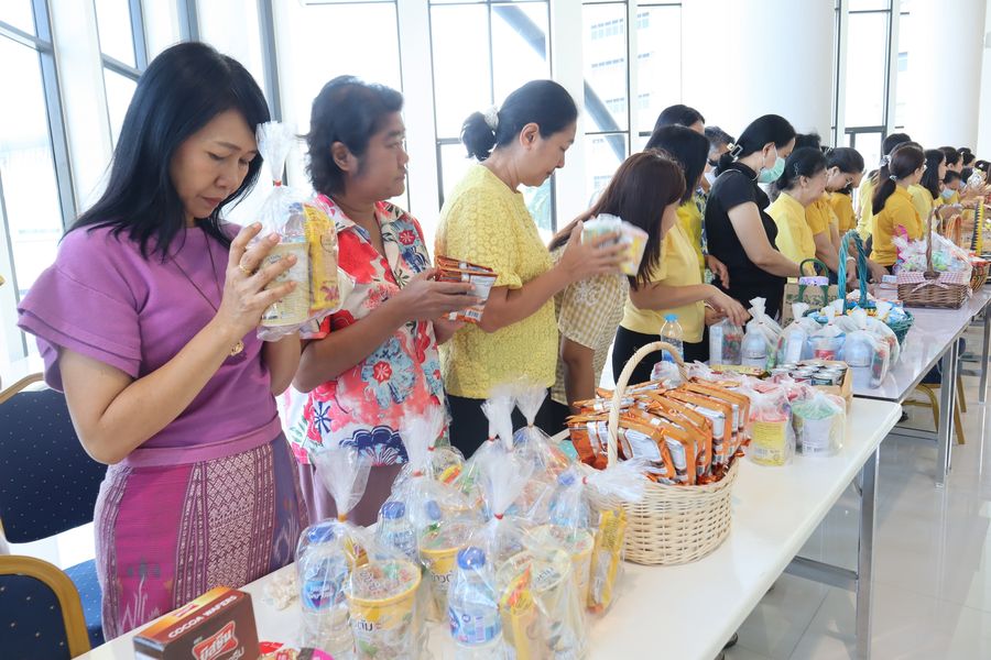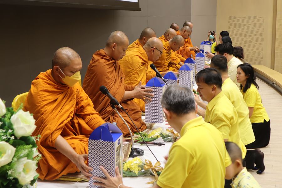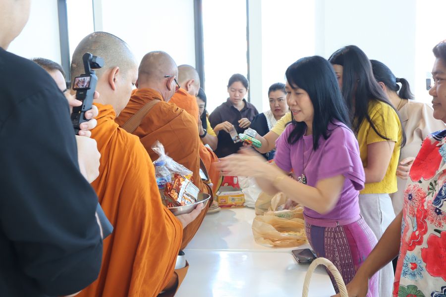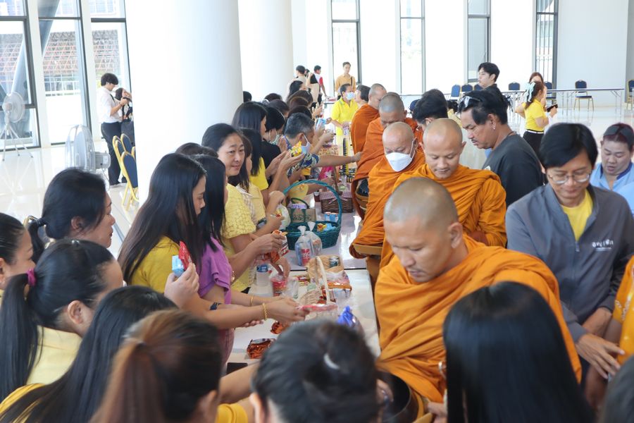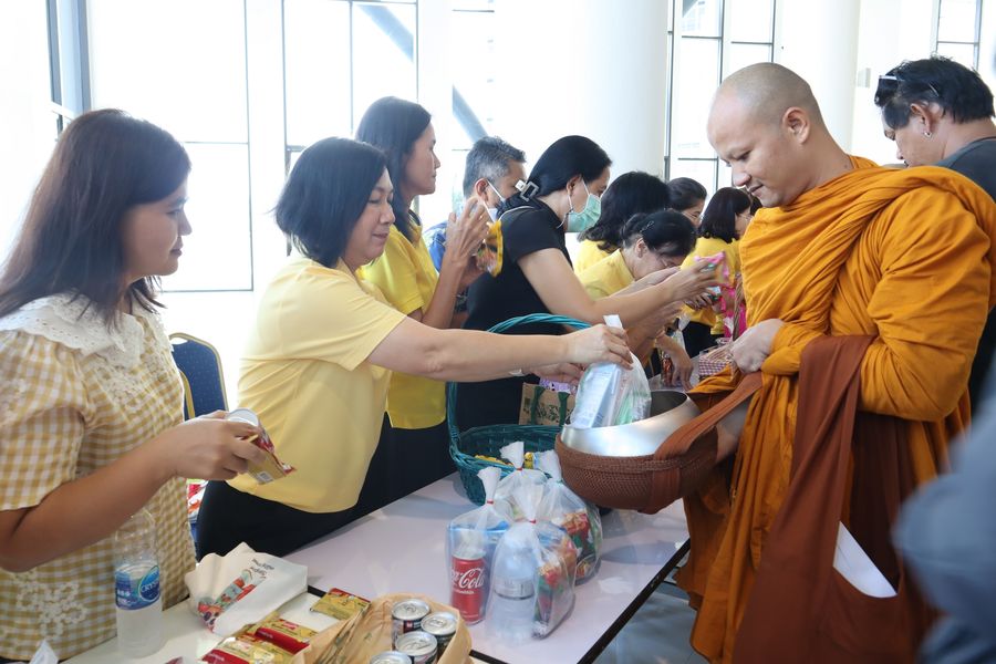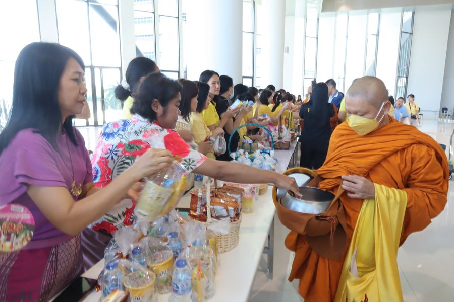 ผู้บริหารและบุคลากรสำนักหอสมุด เข้าร่วมทำบุญตักบาตรอาหารแห้งพระสงฆ์ จำนวน 9 รูป