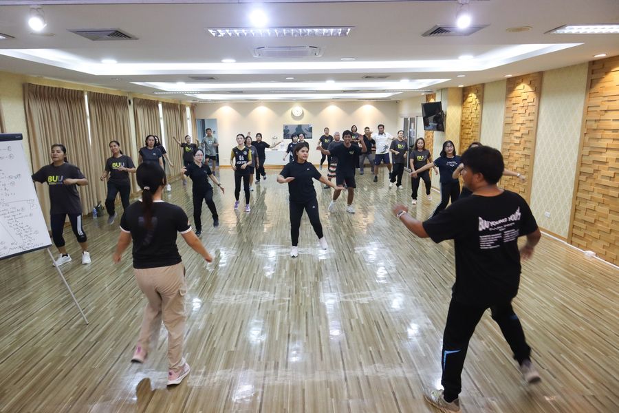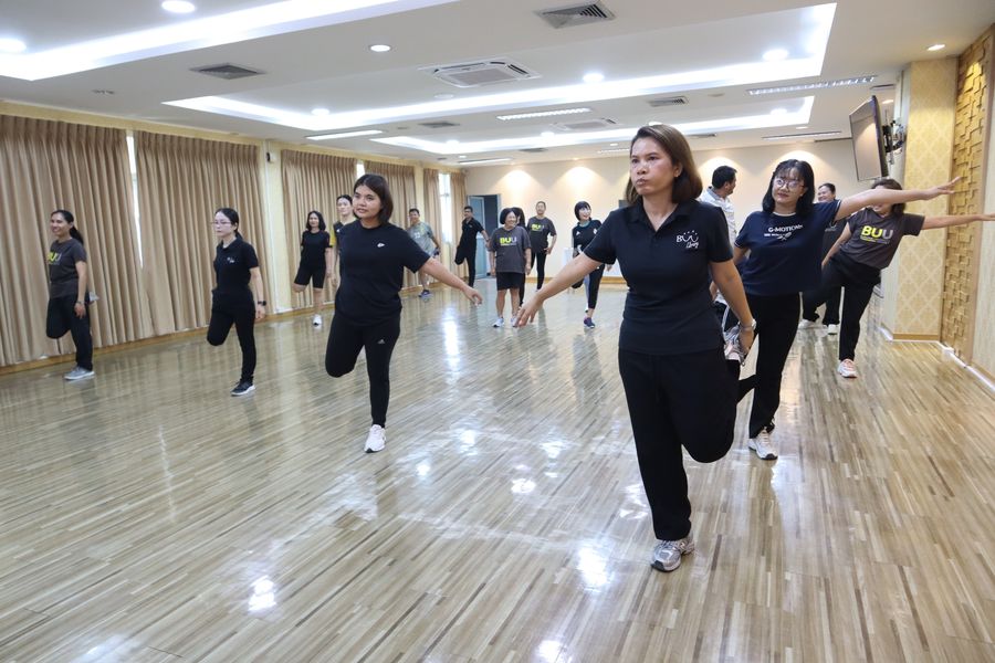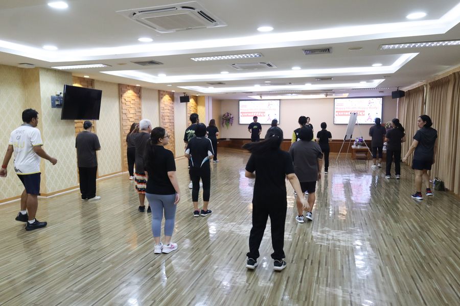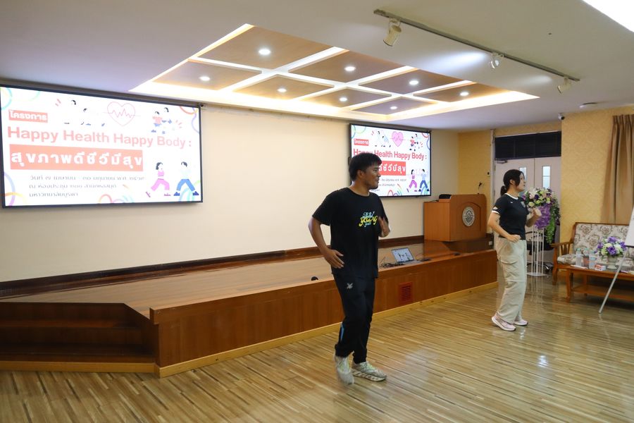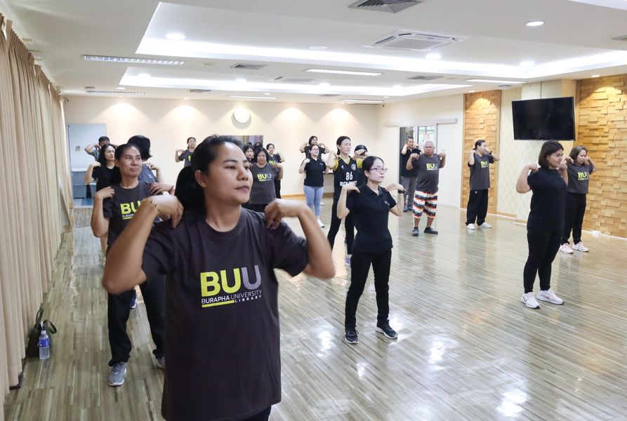 สำนักหอสมุดจัดโครงการ ‘Happy Health Happy Body: สุขภาพดีชีวีมีสุข’ ซีซัน 2 ซึ่งเป็นกิจกรรมที่จัดขึ้นเพื่อส่งเสริมสุขภาพพลานามัย โดยผู้เข้าร่วมกิจกรรมได้ออกกำลังกายอย่างเต็มศักยภาพ ภายใต้การนำและดูแลอย่างใกล้ชิดจากทีมนักศึกษาสาขาวิทยาศาสตร์การกีฬาที่ดำเนินการอย่างเป็นมืออาชีพ เมื่อวันอังคารที่ 7 เมษายน 2569 ณ ห้องประชุม 201 ชั้น 2
