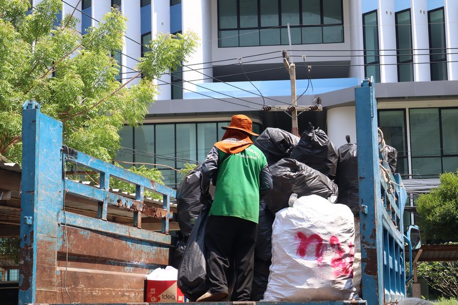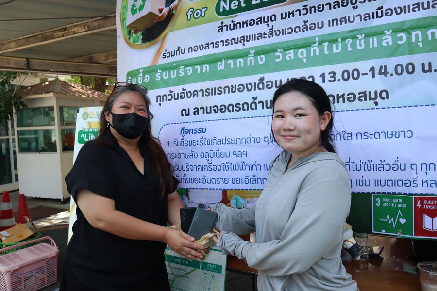 สำนักหอสมุด ร่วมกับกองสาธารณสุขและสิ่งแวดล้อม เทศบาลเมืองแสนสุขมารับซื้อ รับบริจาค รับฝากทิ้งวัสดุที่ไม่ใช้แล้วทุกประเภท ในโครงการ Lib Leng รักษ์โลก for Net Zero Emission ประจำเดือนเมษายน เมื่อวันที่ 7 เมษายน 2569 ณ ลานจอดรถด้านหลังสำนักหอสมุด