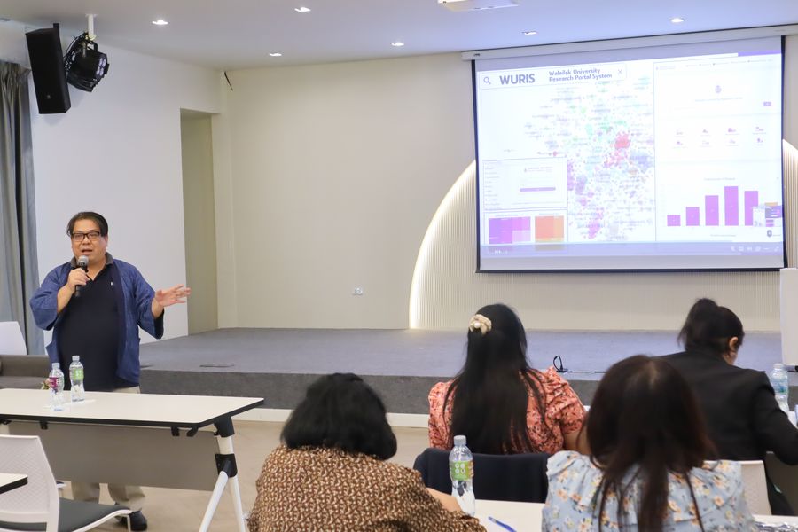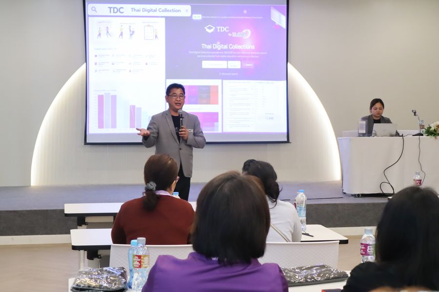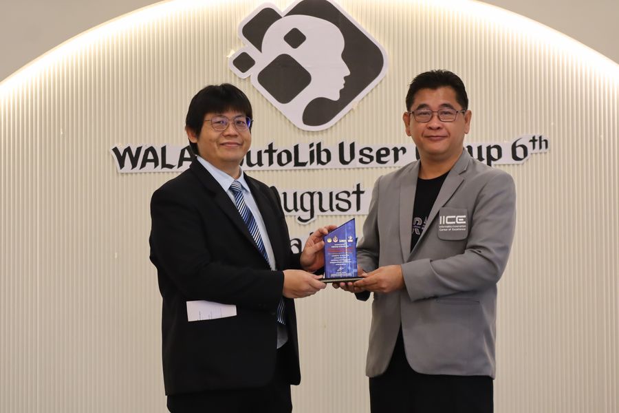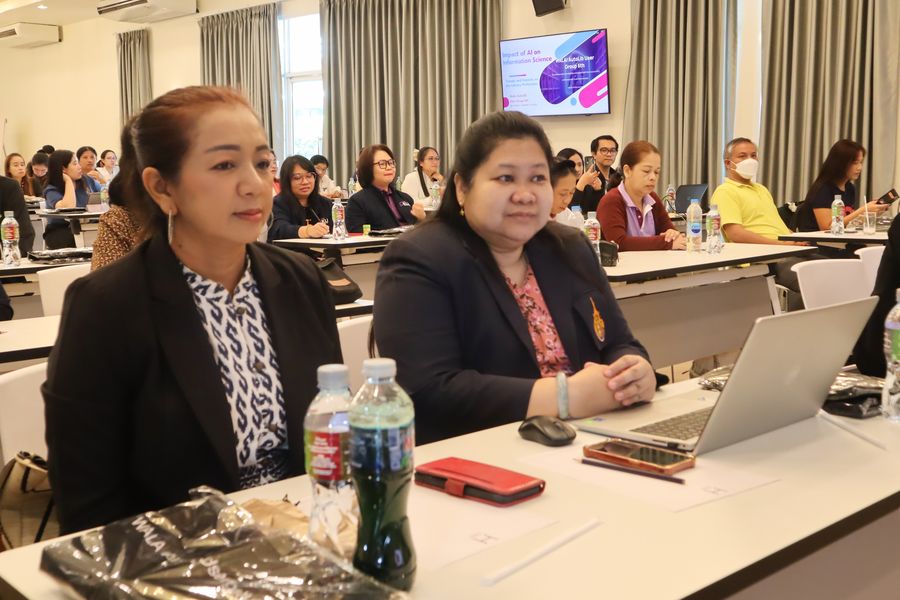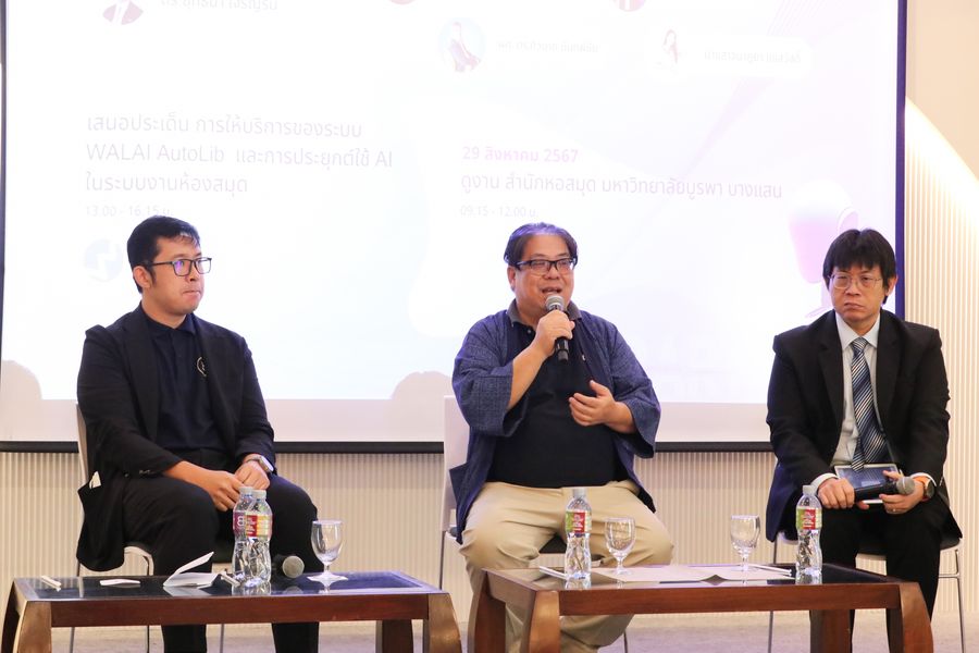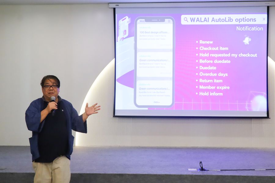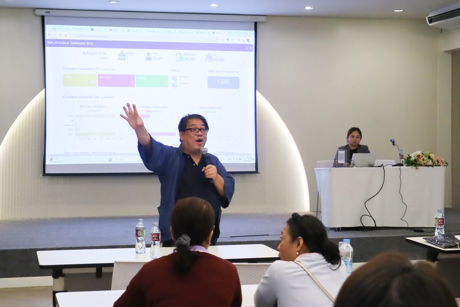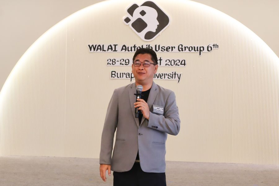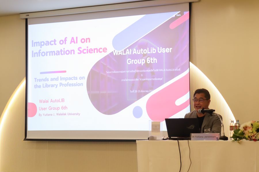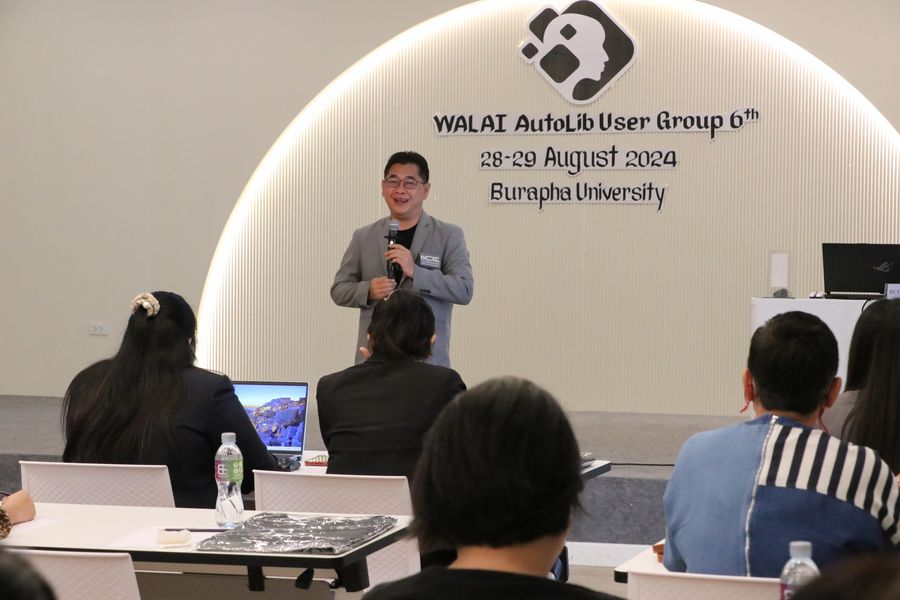 สำนักหอสมุด โดย อาจารย์เหมรัศมิ์ วชิรหัตถพงศ์ ผู้อำนวยการสำนักหอสมุด เข้าร่วมโครงการสัมมนากลุ่มความร่วมมือผู้ใช้ระบบห้องสมุดอัตโนมัติ WALAI AutoLib ครั้งที่ 6 ภายใต้กรอบแนวคิด “AI และระบบงานห้องสมุด” พร้อมด้วยการบรรยายเรื่อง “เทคโนโลยี AI กับวิชาชีพ