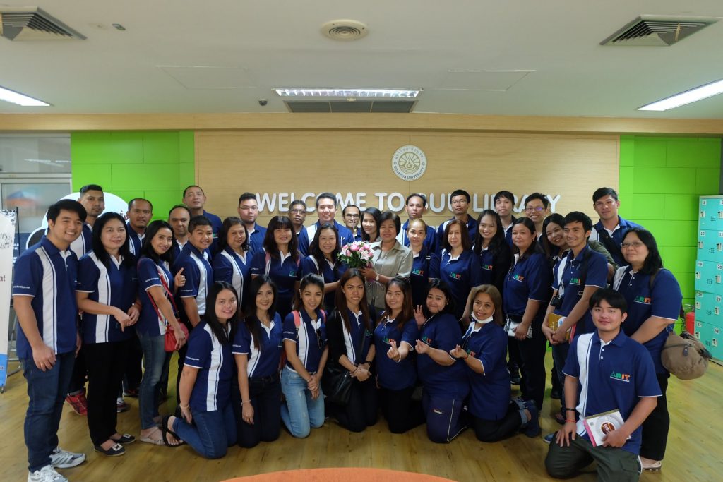 Burapha University had a warm welcome to 41 administrators and staffs from Office of Academic Resources, Rajamangala University of Technology Bangkok for visiting and observing administration and service of Burapha University Library. They were also given a warm welcome by Mrs. Wantana Kitisrivoraphan, the director of Burapha University Library and given a library tour by the librarians on March, 26 2018 at 10.00-12.00 A.M.