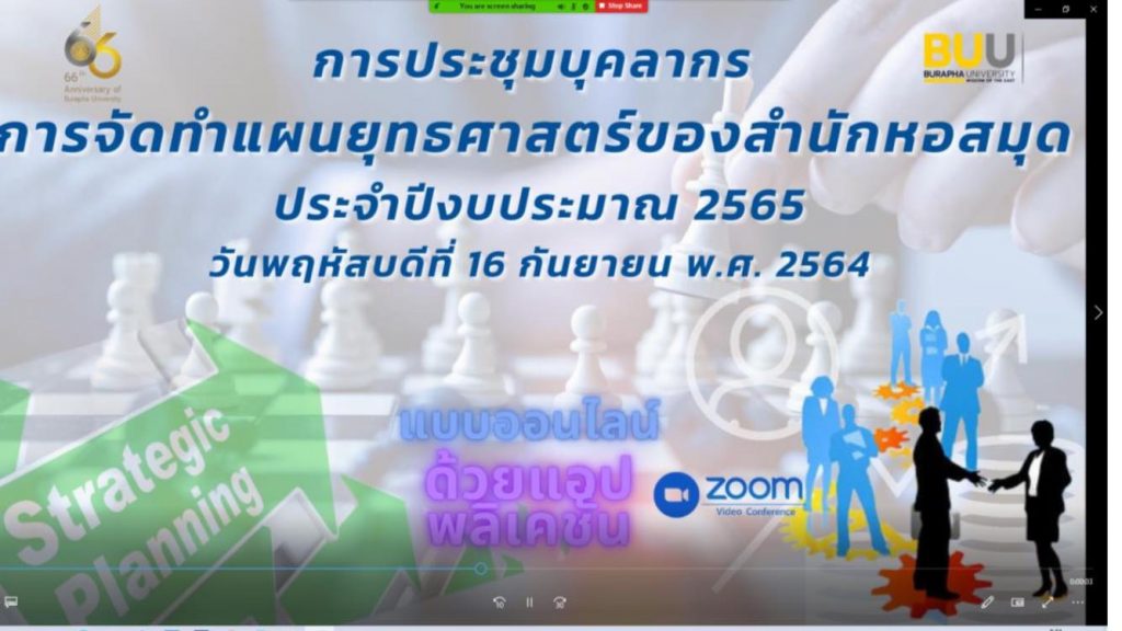 BUU Library online personnel meeting, led by Hemmarat Wachirahatthapong, the Director of BUU Library, was held under the topic of “The Preparation of the Library’s Strategic Plan” for fiscal year 2022 on 16 September 2021.