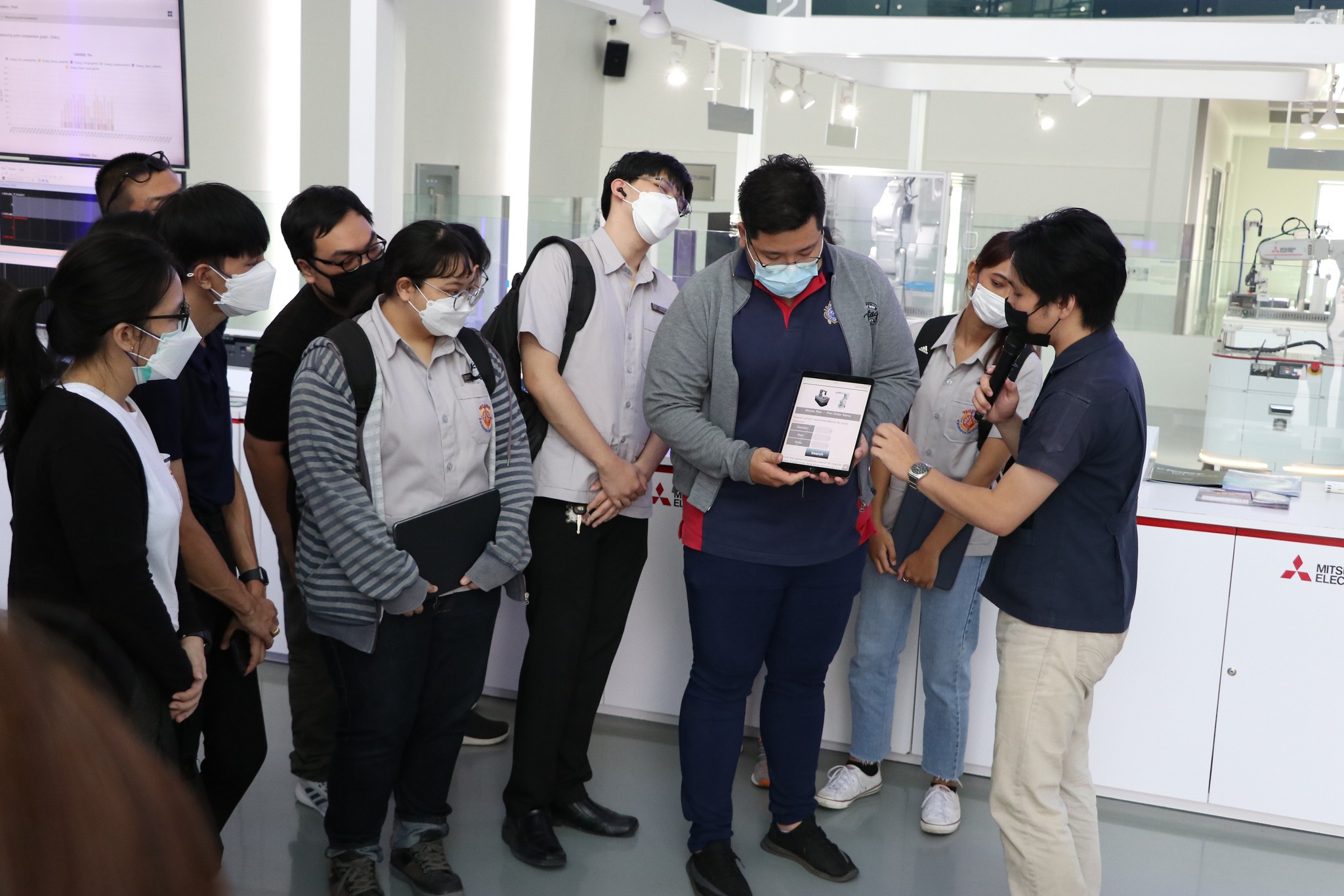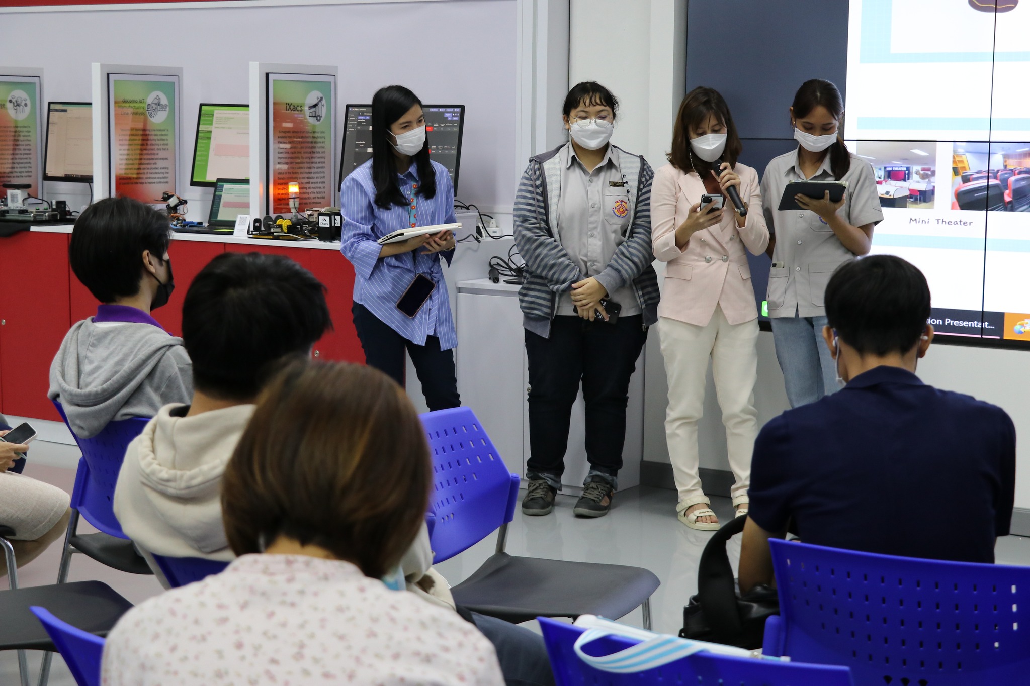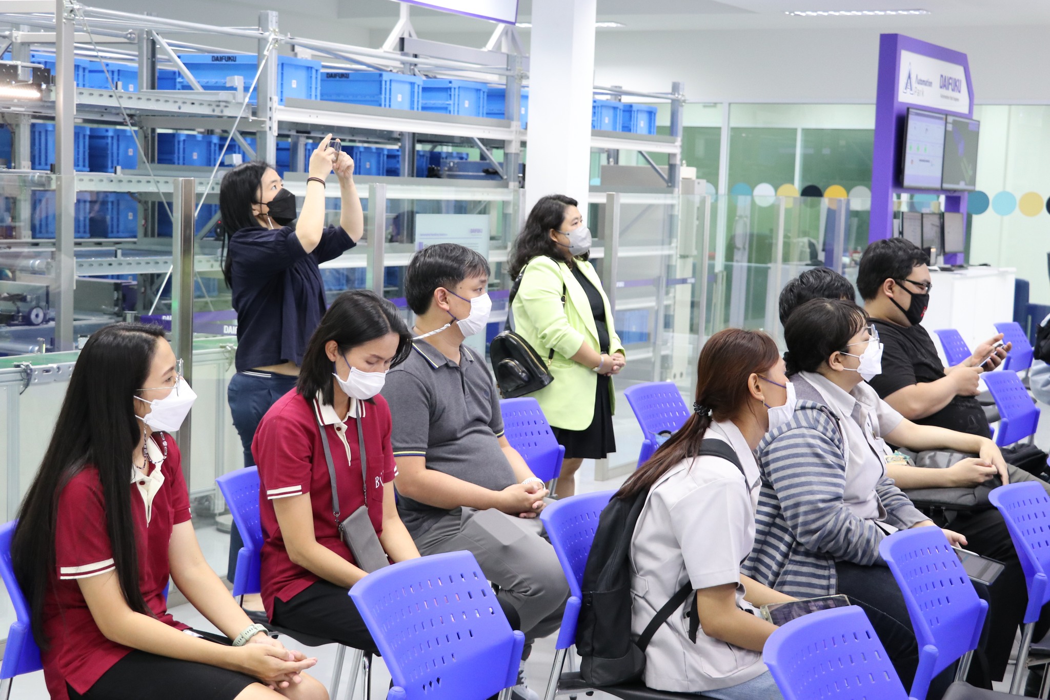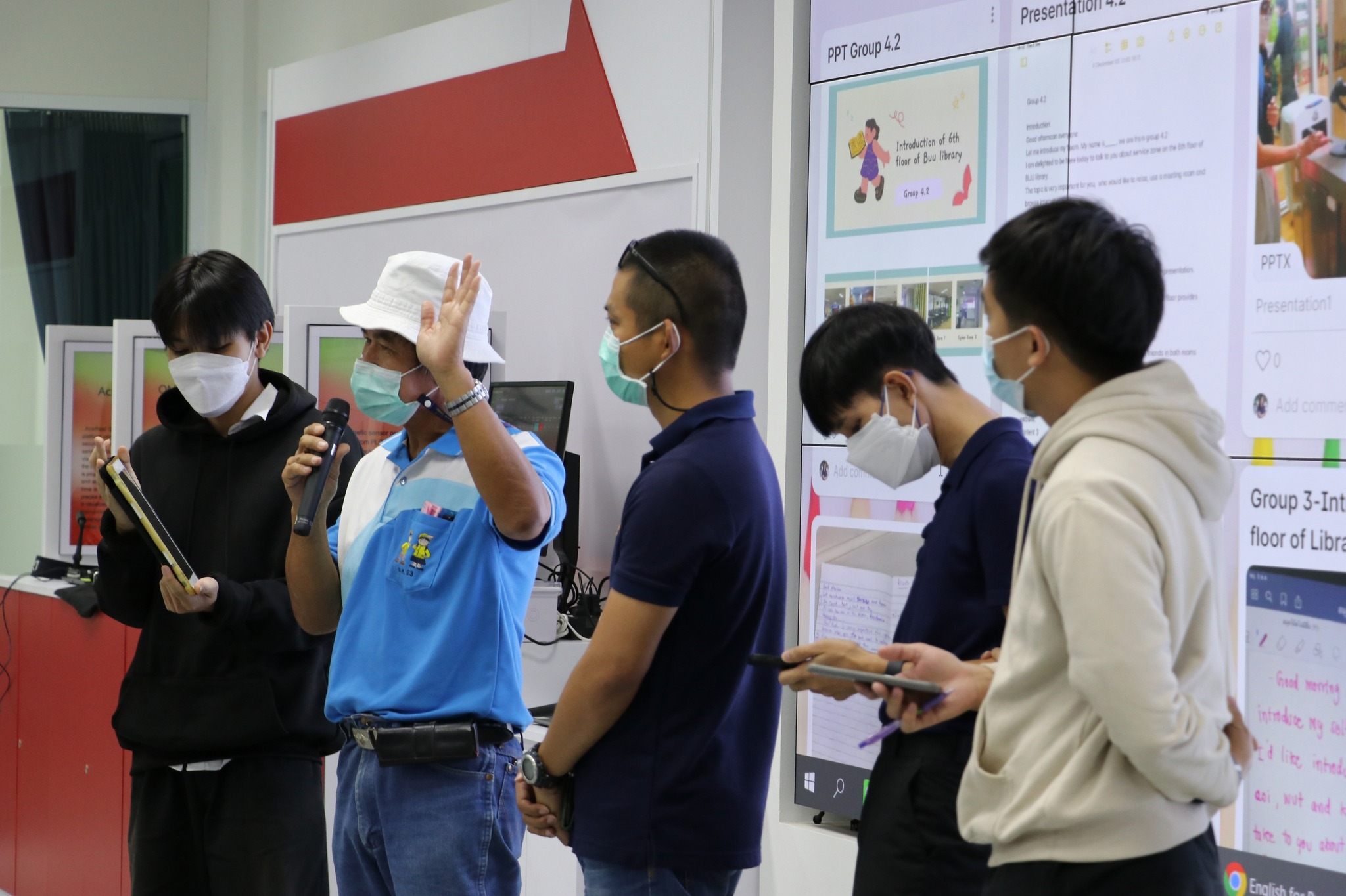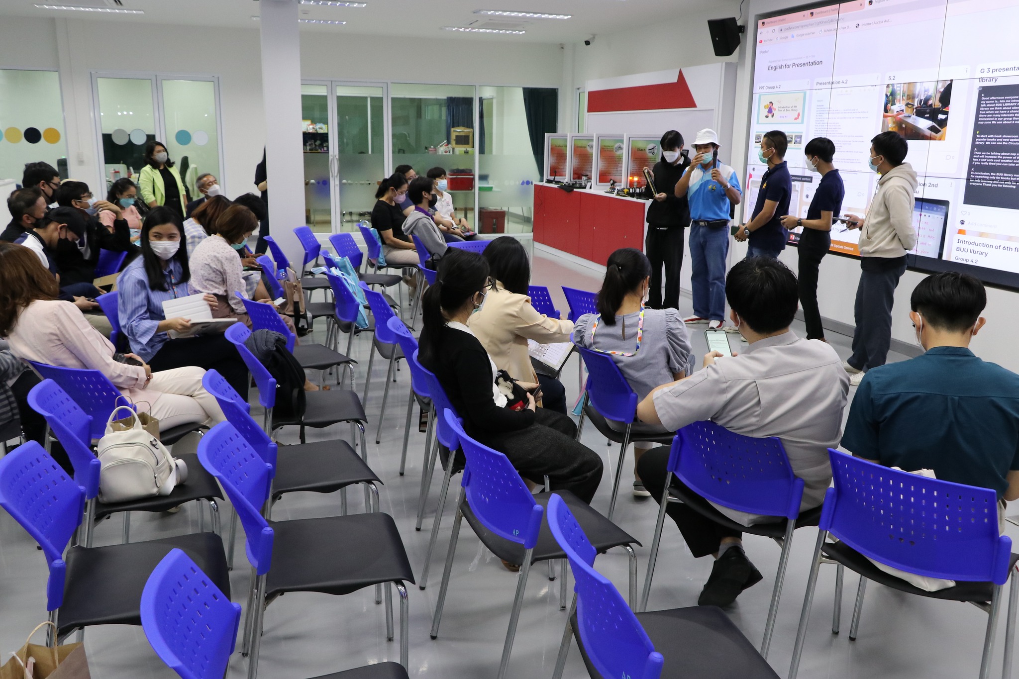 Here are photos of the training atmosphere from the study trip at BUU library and EEC Automation Park, Man Power Learning and Development Center in Automation and Robotics, Faculty of Engineering, Burapha University. The aim of this study trip is to access English language skills for welcoming visitors along with a lecture on the working process in various situations. This was held on 8 December 2022 at the meeting room 201 on the 2nd floor of the library.