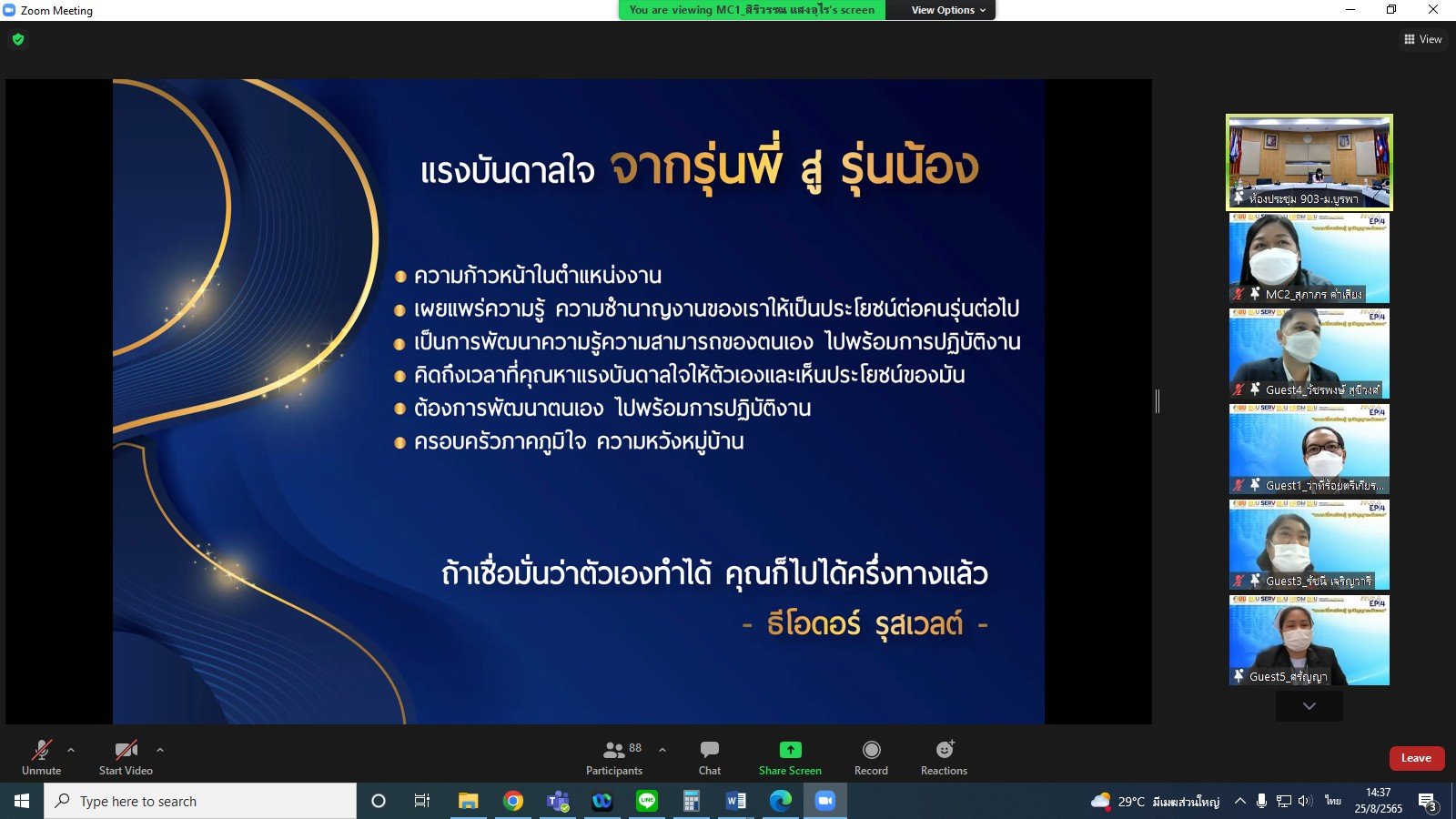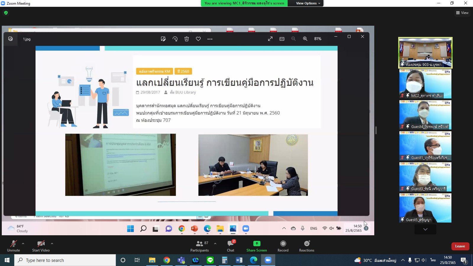 Library Staff, Mrs. Rachanee Charoenwaree, Professional Financial and Accounting Academic Officer, participated in Sharing Knowledge under the Wisdom of the East Knowledge Sharing Project EP.4_Tips for entering a professional position via Online Zoom on 25 August 2022 from 1:00 PM to 3:00 PM.