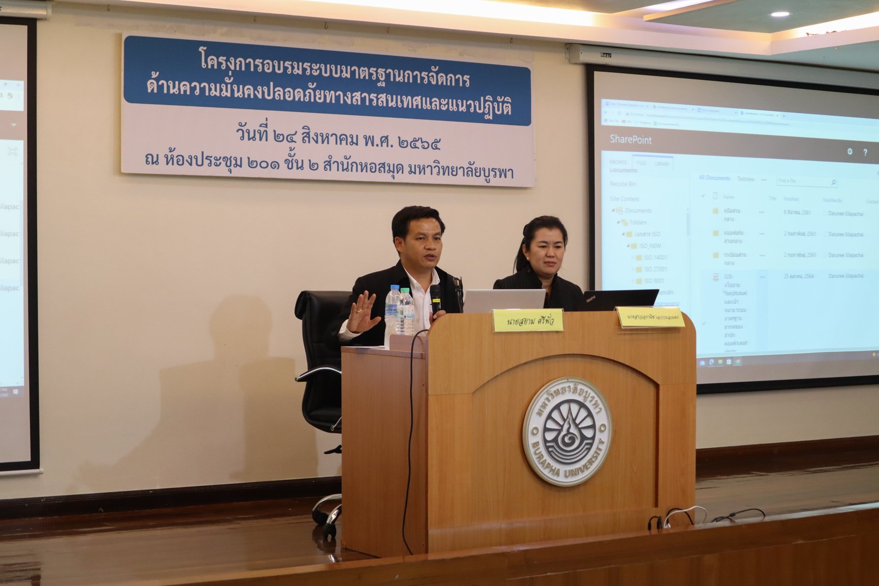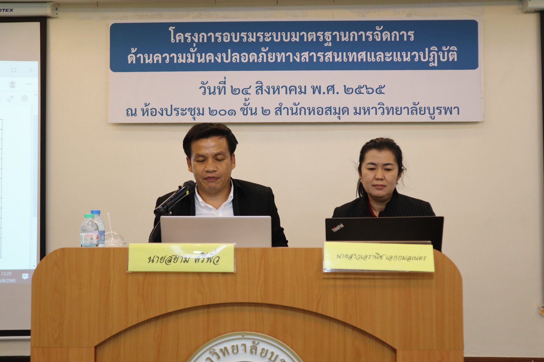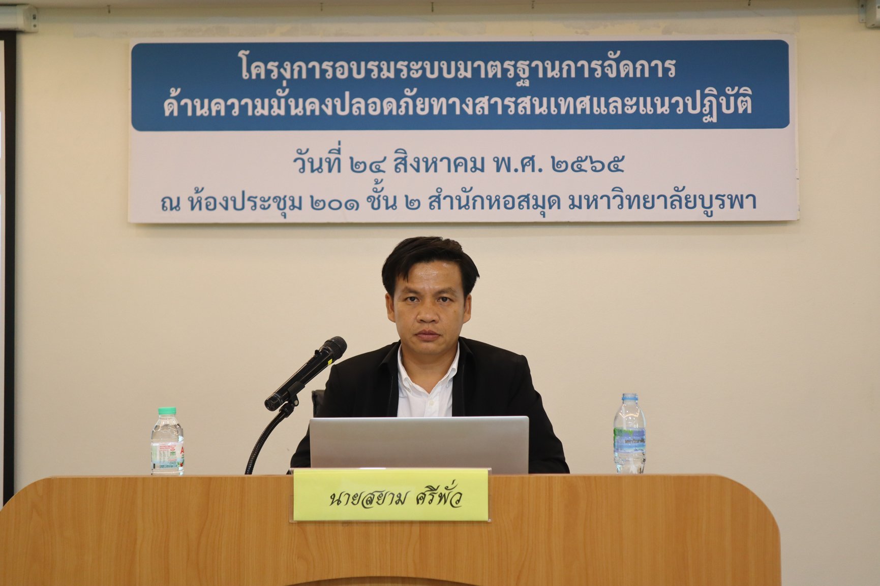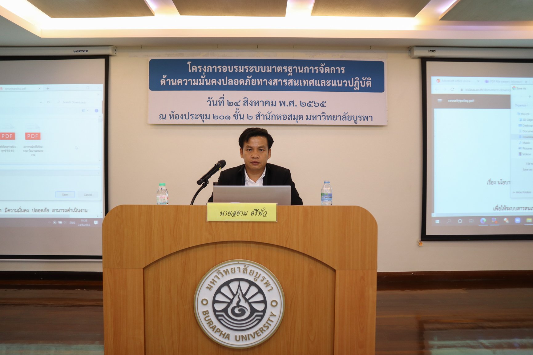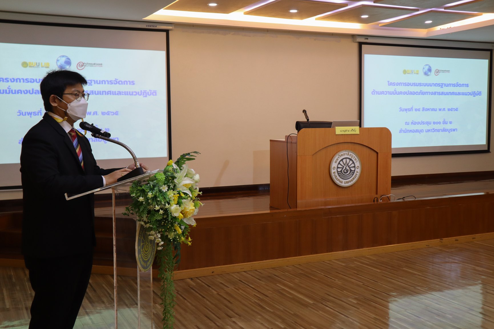 Mr. Hemmarat Wachirahatthapong, the Director of BUU Library, opened remarks “Information Security Management Standard System and Guidelines”