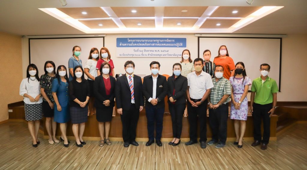 so that participants can have knowledge and understanding about information security and know the correct implementation according to the information security management standard system and guidelines of the library by the speakers from the Computer Center, Mr. Siam Sripua, the Head of System Infrastructure Department and Ms. Eranich Ekamonnate, Professional Policy and Planning Analyst on 24 August 2021 from 8:30 a.m. to 4:30 p.m. at the meeting room 201 on the 2nd floor of the library.