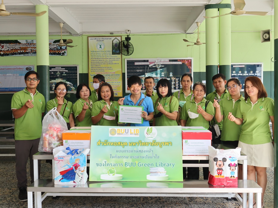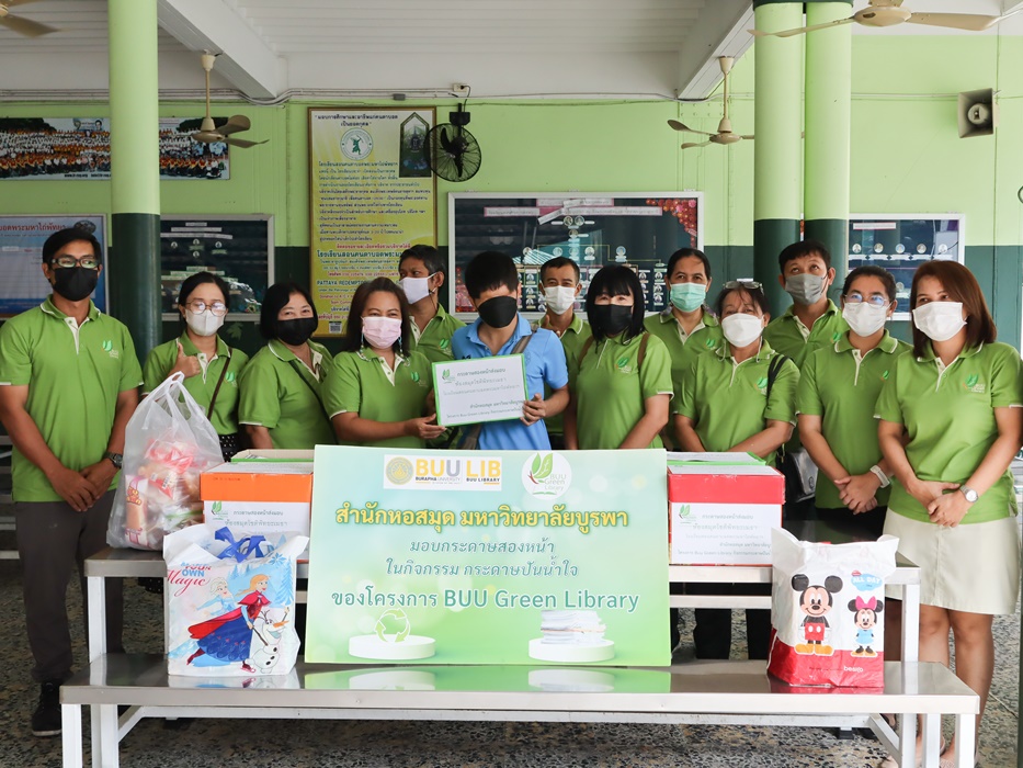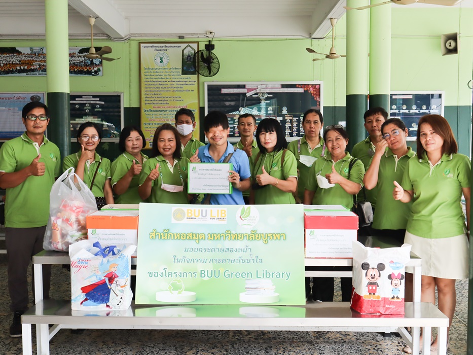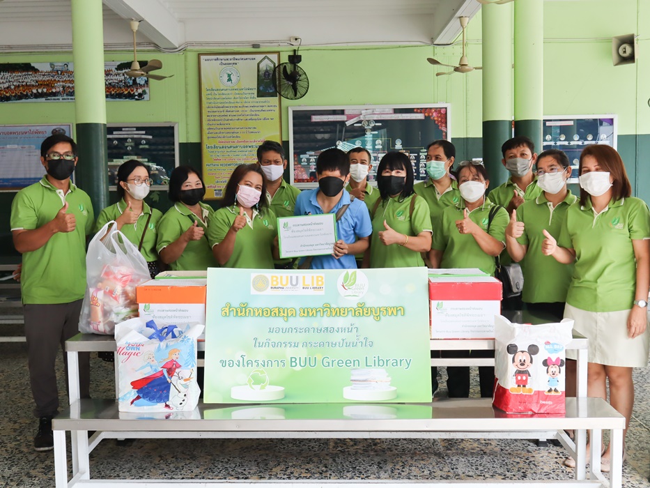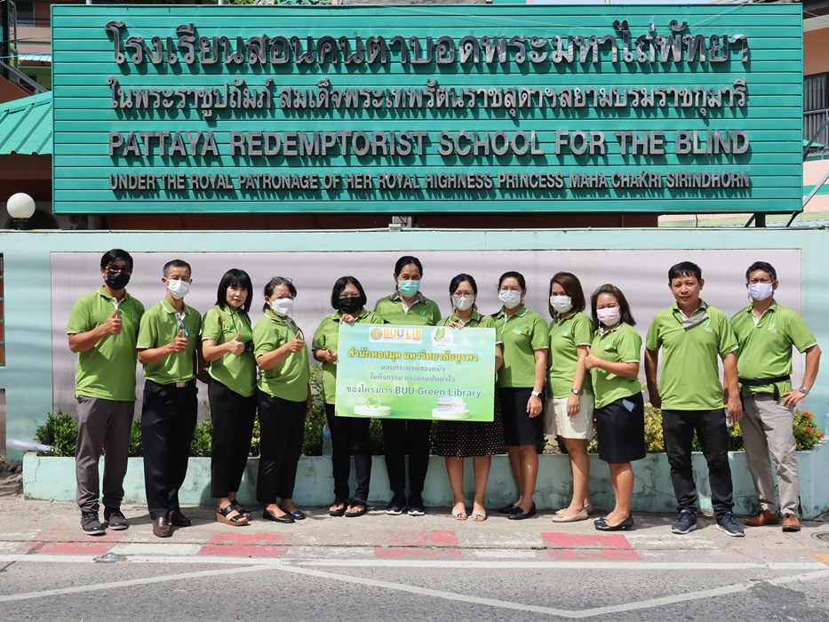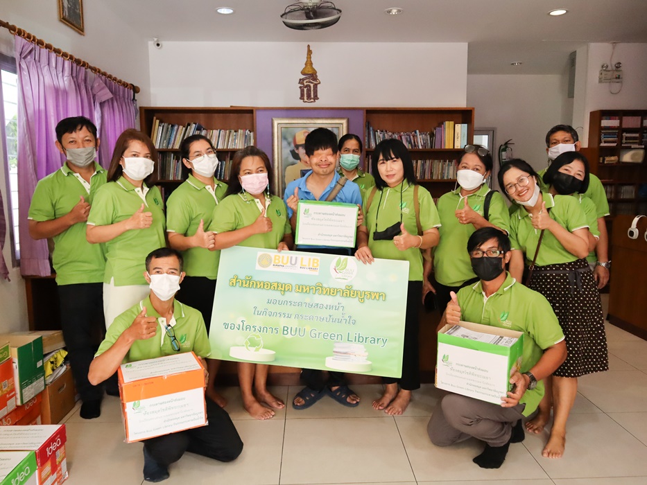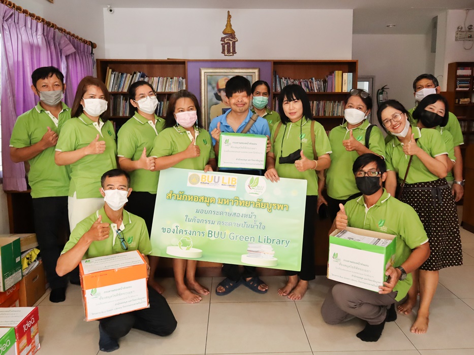 BUU Library staff participated in the “Paper Sharing Kindness” activity by donating two A4-sized reused papers to the School for the Blind, Redemptorist Center, Pattaya Chonburi Province in order to be apply in studying for the visually impaired under BUU Green Library Project on