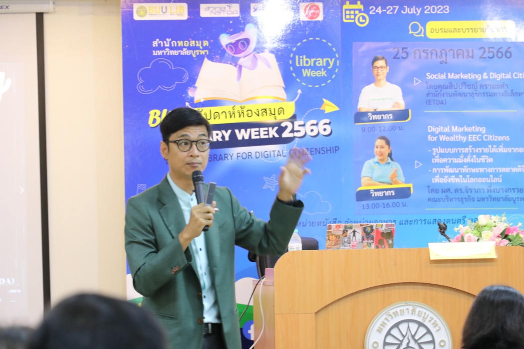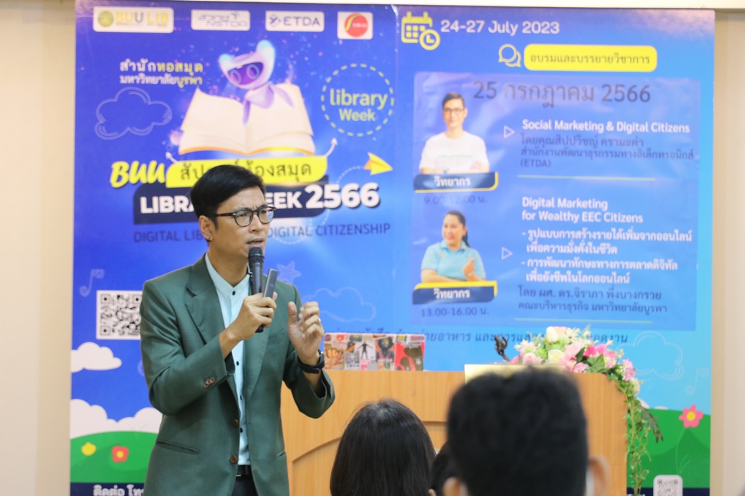 Burapha University Library held the academic lecture on Social Marketing & Digital Citizens at Library Week 2023 by the guest speaker, Mr. Sippawit Kramakam, the expert from the Electronic Transactions Development Agency (ETDA) on 25 July 2023 at 9:00 a.m. – 12:00 p.m. at the meeting room 201 on the 2nd floor of the library.
