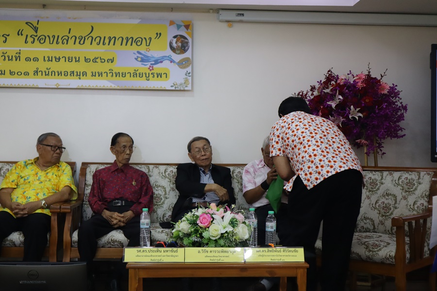 Burapha University Library, led by Mr. Hemmarat Wachirahatthapong, the Director of BUU Library, inaugurated the “Tao Thong Stories” Project. This project held in collaboration with the Student Affairs Division, aims to collect historical information, documents, and evidence related to the history and prestige of Burapha University. The knowledge and data gathered will be published in Burapha University Archives for future generations to study and research. The speakers included alumni and senior faculty members as follows:
