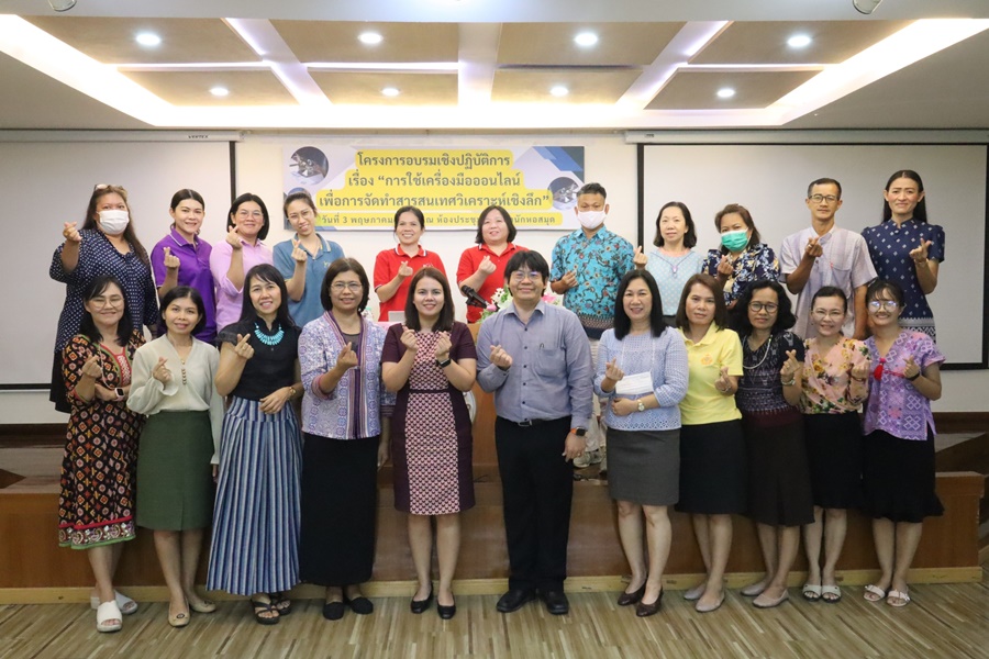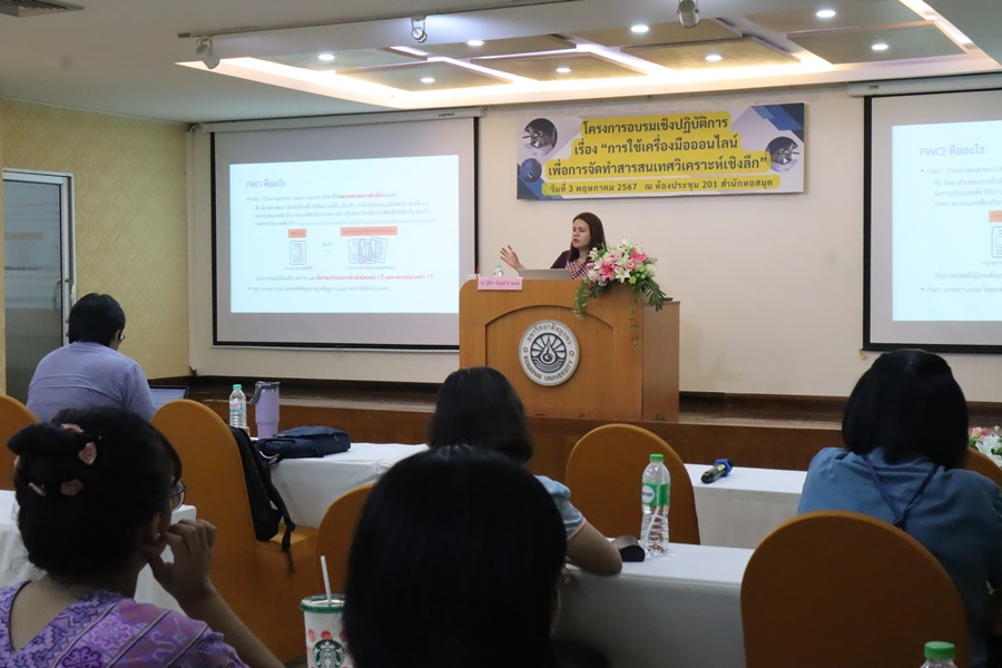 Burapha University Library, led by Mr. Hemmarat Wachirahatthaphong, the Director of the Library, along with administrators and staff, participated in the third workshop on “Using Online Tools for In-Depth Information Analysis.” The session was conducted by Dr. Thitima Deeboonmee Na Chumphae, Manager of Knowledge Services and Management, Scientific and Technological Knowledge Services (STKS), National Science and Technology Development Agency (NSTDA). The workshop took place on 3 May 2024 in the meeting room 201 on the 2nd floor of the library.