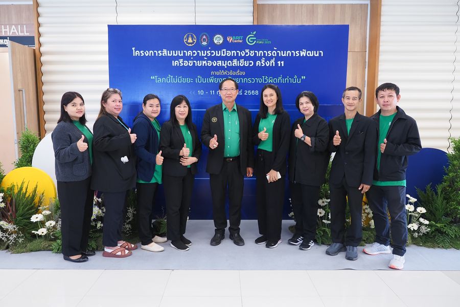 Personnel from BUU Library participated in the Academic Collaboration Seminar on Green Library Network Development, which included a lecture titled “There Is No Waste in This World—Only Resources Placed in the Wrong Location.” The seminar was held at the Office of Academic Resources and Information Technology, Pibulsongkram Rajabhat University. Participants also took part in a field study at a model temple for waste management, “Waste for Merit,” led by Phra Phawanawachiracharn, the abbot of Wat Wang Hin, Mueang District, Phitsanulok Province. The program took place on February 10-11, 2025.