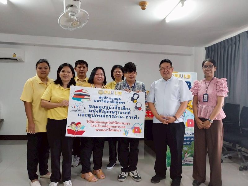 Burapha University Library organized the project “Sharing Knowledge with the Visually Impaired” by providing audiobook files, listening devices, A4-sized paper, and single-sided sheets to Chotipittayametha Library at the Redemptorist Pattaya School for the Blind. The project also included reading promotion activities to cultivate a love of reading among the participating students. The activities took place on July 29, 2025, at the Redemptorist Pattaya School for the Blind, Chonburi Province.