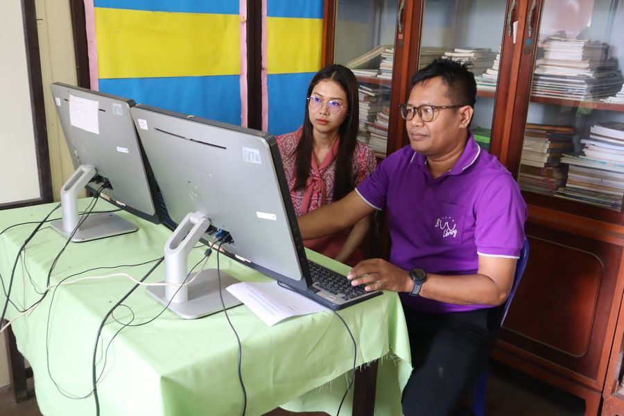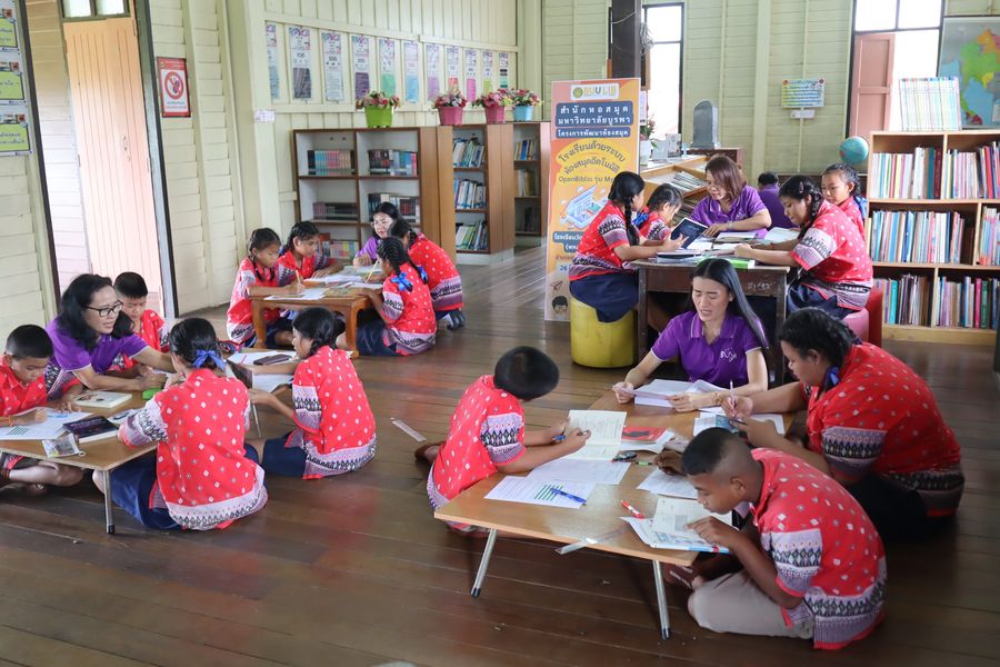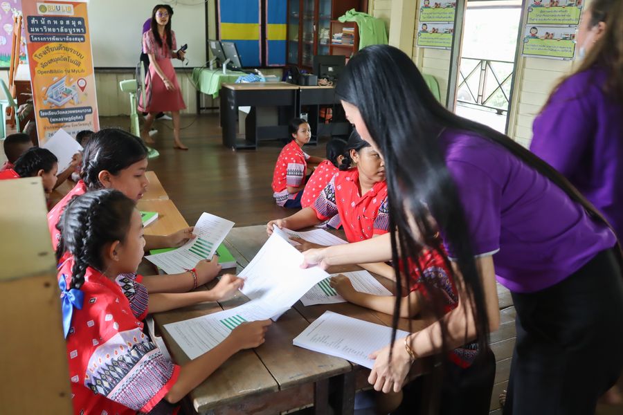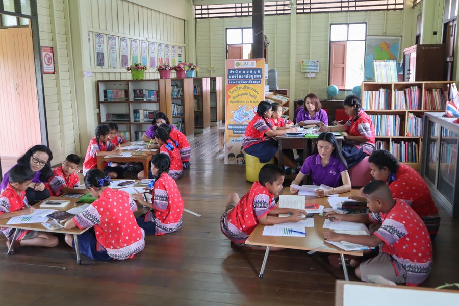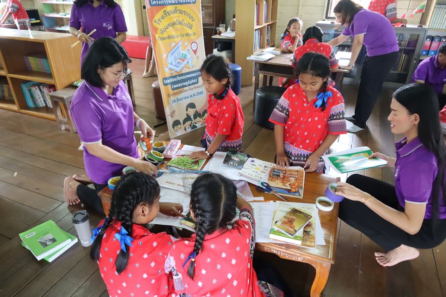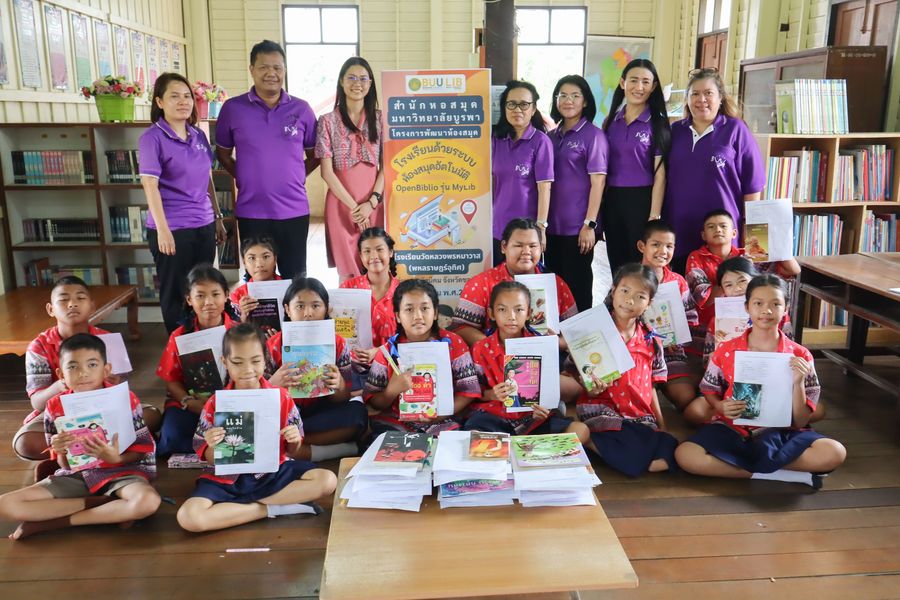Burapha University Library held the School Library Development Project with the OpenBiblio Automated Library System (MyLib Version) by reviewing book cataloging, book labeling, and book arrangement. The aim was to enhance the skills of teachers and students responsible for school library management, equipping them to keep pace with advances in information technology. The project took place on August 26, 2025, at Wat Luang Phrommawas School (Phahonradutith School).