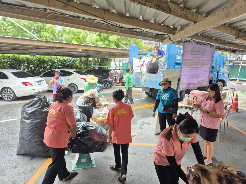 Burapha University Library, in collaboration with the Division of Public Health and Environment, San Suk Municipality, organized the “Lib Leng Saves the World for Net Zero Emission” project for the month of September on September 2, 2025. The activity included collecting, purchasing, donating, and accepting various types of unused materials. The event took place at the parking area behind the library.