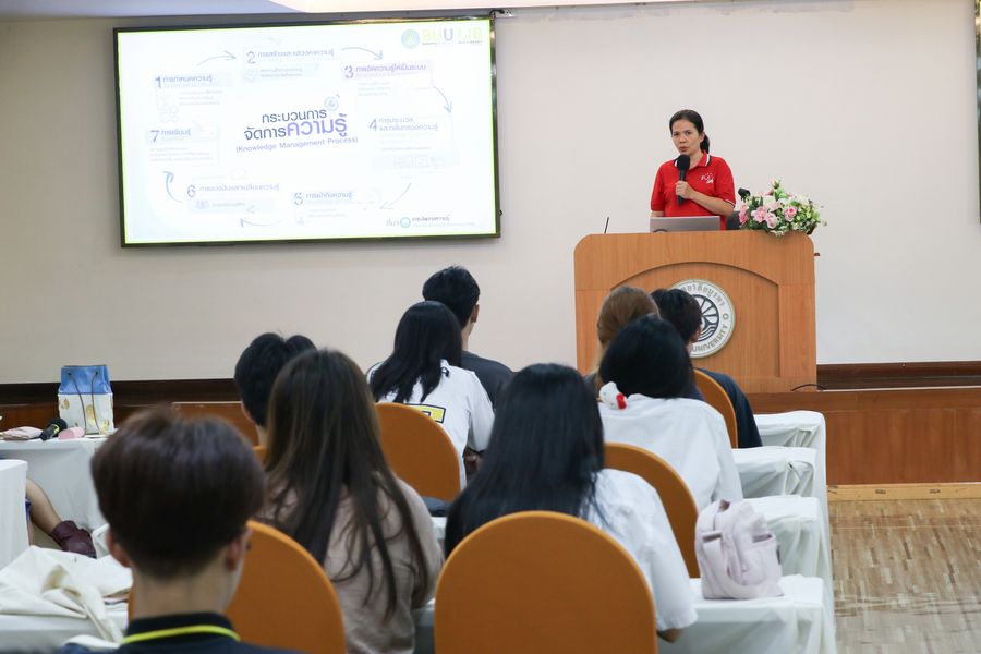 A total of 35 second-year students from the Information Studies Program, Faculty of Humanities and Social Sciences, attended a lecture on the topic “Knowledge Management and Organizational Management for Information Professionals at Burapha University Library.” The session was conducted by Ms. Supawadee Phetchuensakul, Assistant Director for Organizational Image Management, Burapha University Library, as part of the “Share & Learn with Information Organizations” activity under the course Knowledge Management, offered by the Department of Information Studies. The event took place on September 23, 2025, at the Meeting Room 201 on the 2nd floor of the library.