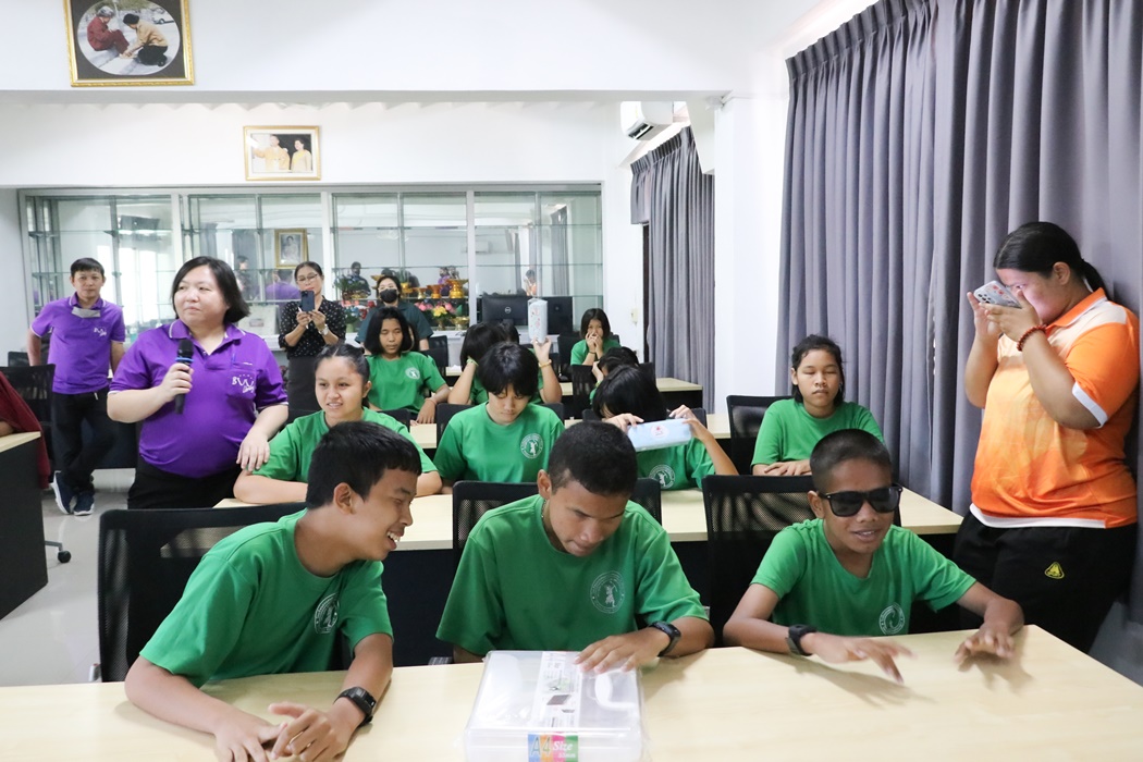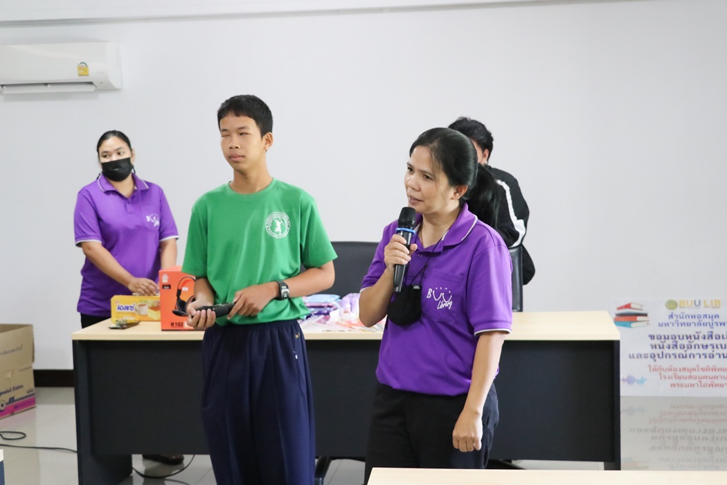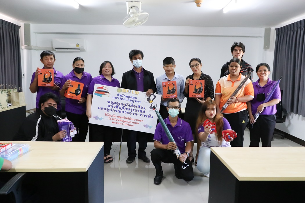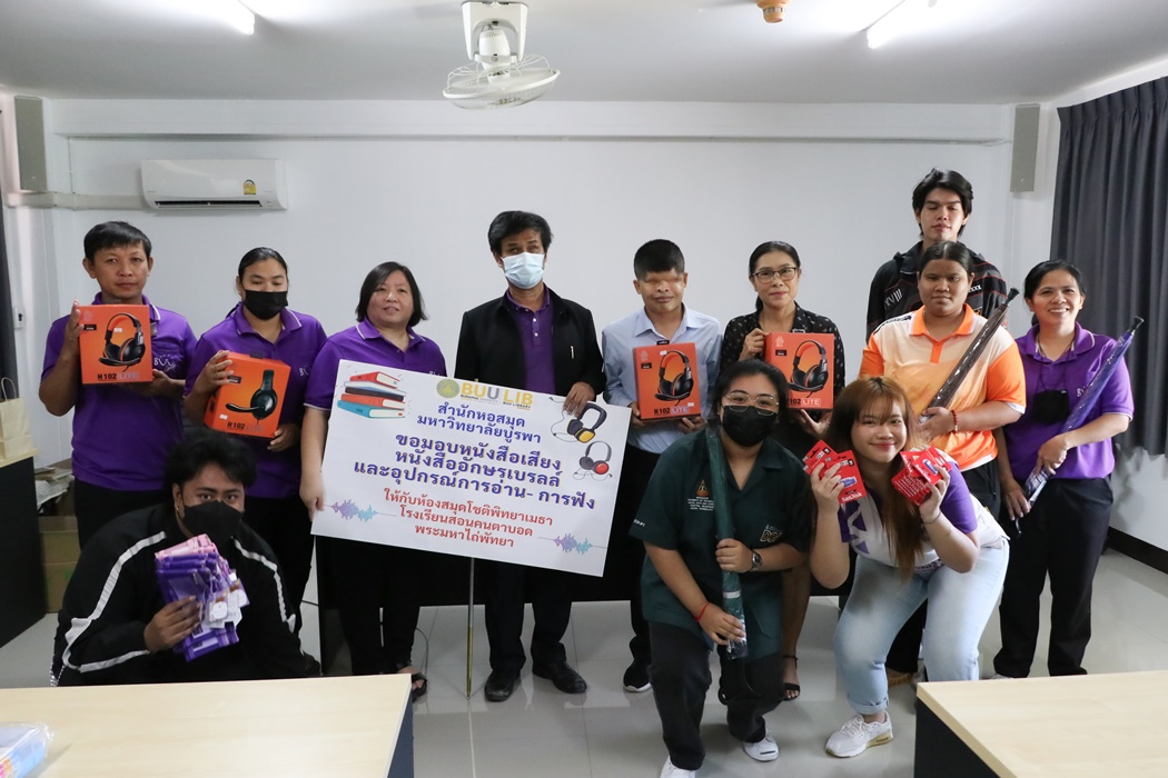 สำนักหอสมุดจัดโครงการ “หนังสือเสียง: ส่งต่อความรู้สู่ผู้พิการทางสายตา” โดยนำหนังสือเสียง หนังสืออักษรเบรลล์ และอุปกรณ์สำหรับการอ่านและการฟัง มอบให้กับห้องสมุดโชติพิทยาเมธา โรงเรียนสอนคนตาบอดพระมหาไถ่พัทยา รวมถึงจัดกิจกรรมส่งเสริมการอ่านเพื่อปลูกฝังนิสัยรักการอ่านให้กับนักเรียนที่เข้าร่วมกิจกรรม เมื่อวันที่ 13 กรกฎาคม 2566 ณ โรงเรียนสอนคนตาบอดพระมหาไถ่พัทยาจังหวัดชลบุรี