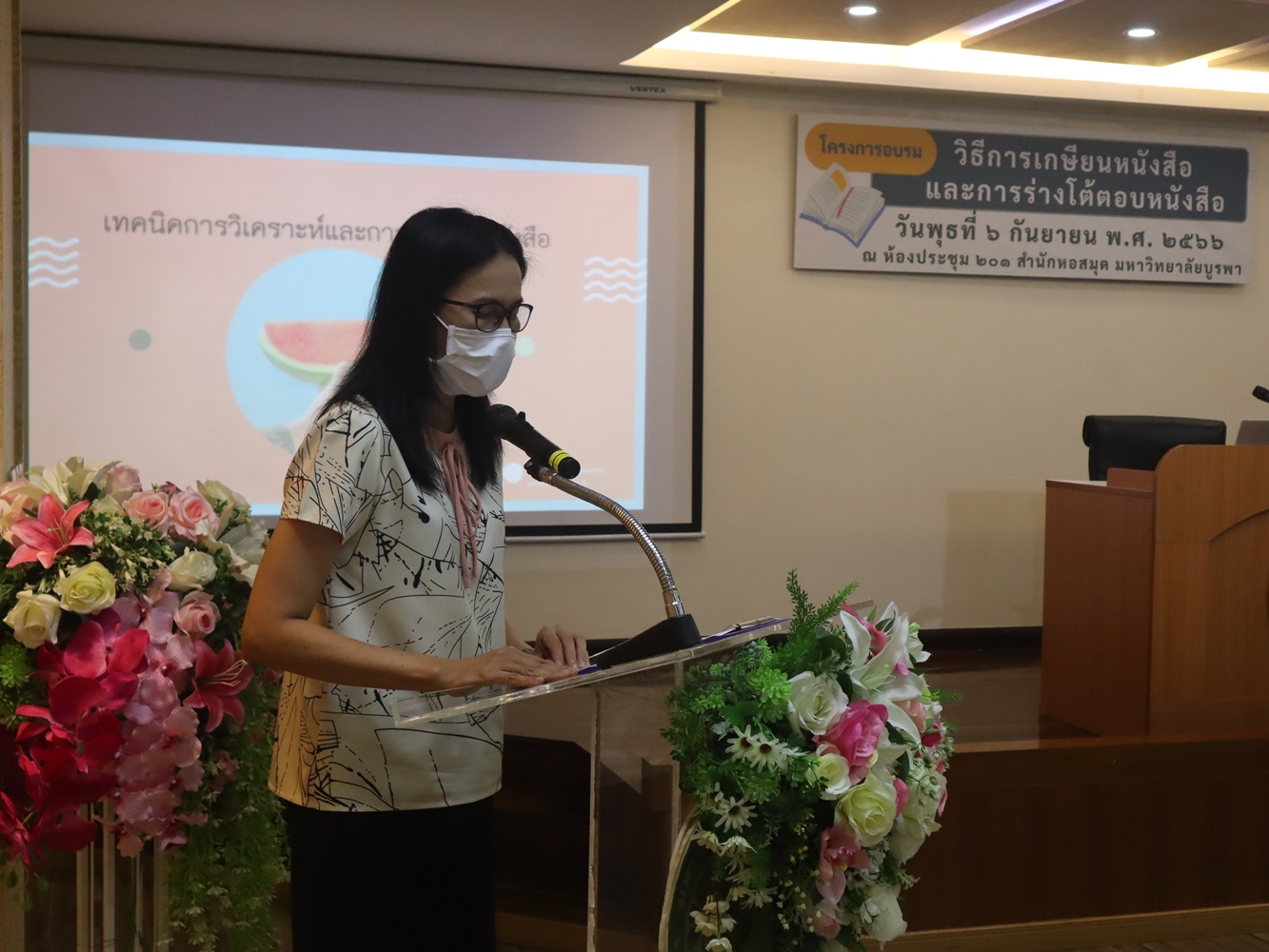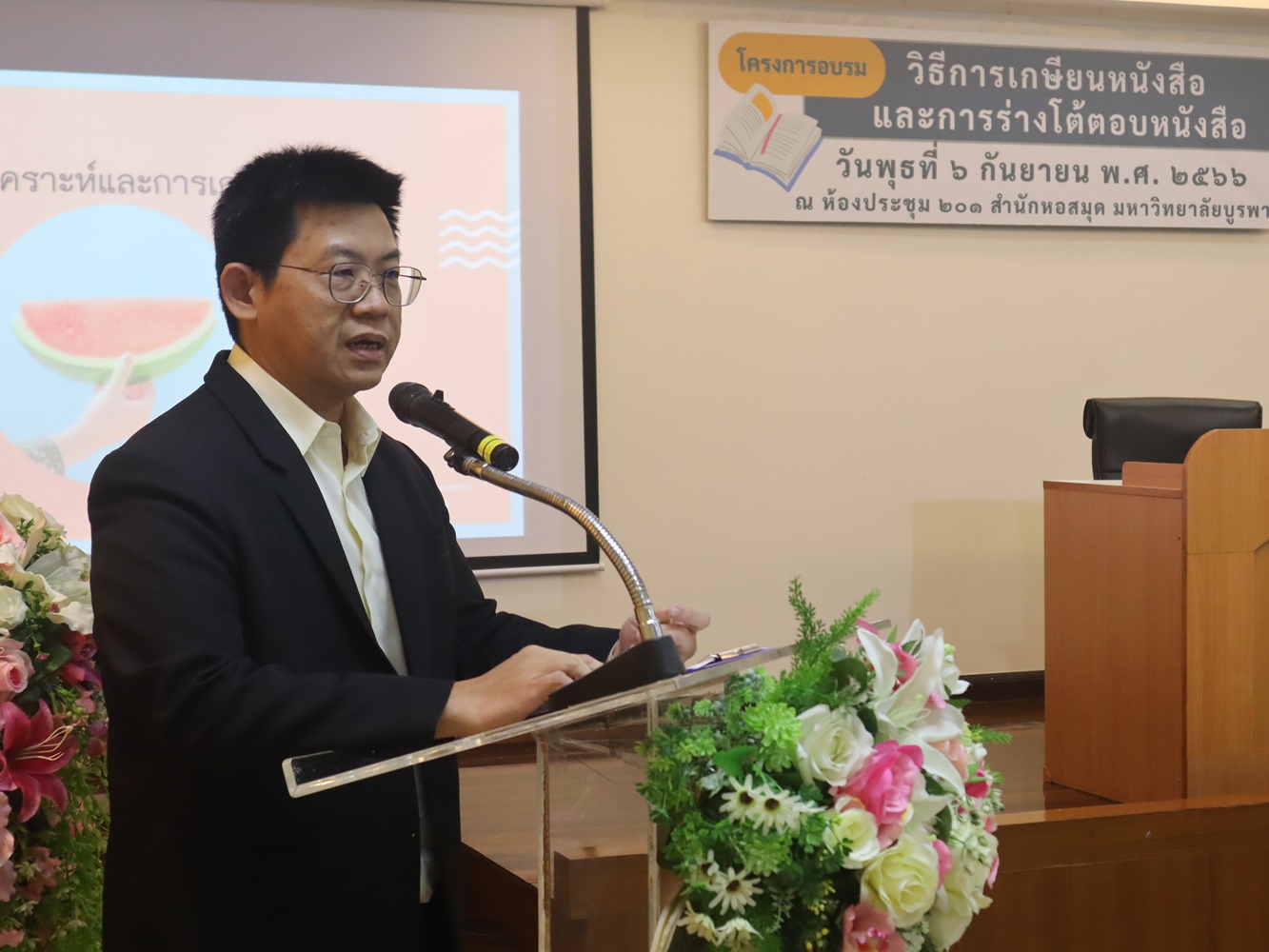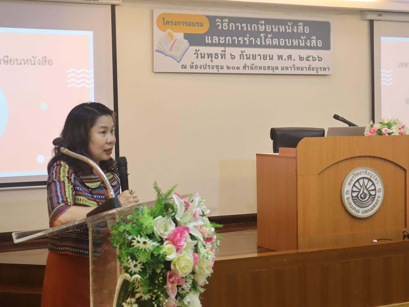 สำนักหอสมุด มหาวิทยาลัยบูรพา นำโดยอาจารย์เหมรัศมิ์ วชิรหัตถพงศ์ ผู้อำนวยการสำนักหอสมุด กล่าวเปิดโครงการอบรม เรื่อง “วิธีการเกษียณหนังสือและการร่างโต้ตอบหนังสือ” เพื่อให้บุคลากรทราบถึงหลักการและแนวทางปฏิบัติในการร่างโต้ตอบหนังสือราชการและศิลปะการใช้ภาษาเพื่อการเขียนหนังสือราชการได้ โดยได้รับเกียรติจากทีมวิทยากรจากงานสารบรรณ กองกลาง มหาวิทยาลัยบูรพา นำโดยคุณวรรณา แนบเชย ผู้อำนวยการกองกลาง คุณมนธนา กัลยาณสุโข เจ้าหน้าที่บริหารงานทั่วไปชำนาญการ คุณสมพร อานามนารถ พนักงานธุรการ 4 และคุณประทุมพร ประเสริฐลาภ เจ้าหน้าที่บริหารงานทั่วไป เมื่อวันที่ 6 กันยายน พ.ศ. 2566 ณ ห้องประชุม 201 สำนักหอสมุด