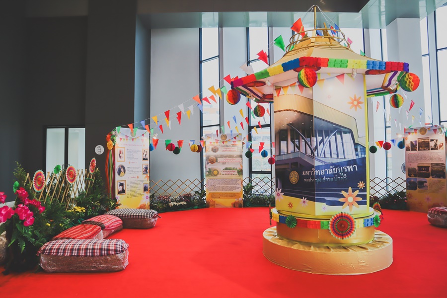สำนักหอสมุด มหาวิทยาลัยบูรพา ได้รับมอบหมายในการจัดนิทรรศการประกอบการแสดงคอนเสิร์ตลูกทุ่งมหาวิทยาลัยบูรพาและมหาวิทยาลัยเกษตรศาสตร์เพื่อเชื่อมชีวิตชุมชน : EP พิเศษ ลูกทุ่งสองบาง “ดาวกระจุยบางเขน เยือนบูรพาบางแสน” ในวันที่ 16 ธันวาคม พ.ศ. 2566 ณ บริเวณชั้น 2 หอประชุมธำรง บัวศรี มหาวิทยาลัยบูรพา โดยภายในนิทรรศการนำเสนอถึงประวัติท่านศาสตราจารย์ ดร.ธำรง บัวศรี และความเป็นมาของการปรับปรุงหอประชุมธำรง บัวศรี