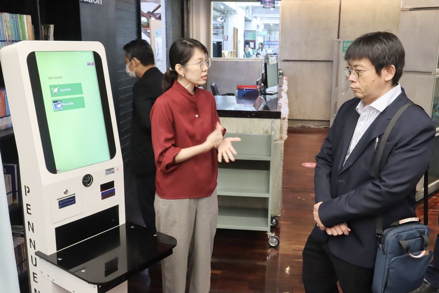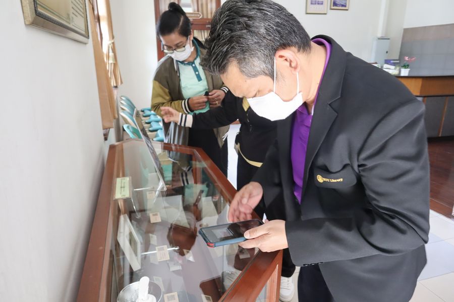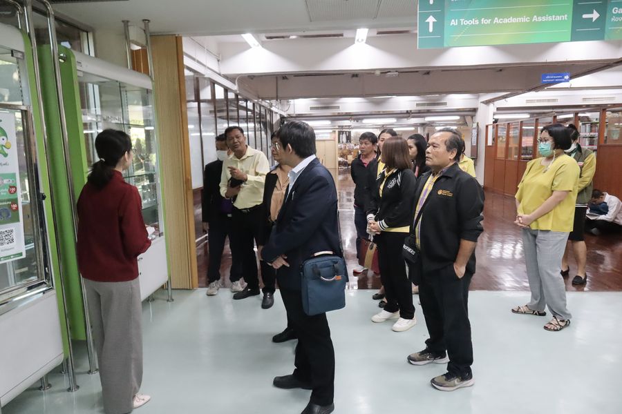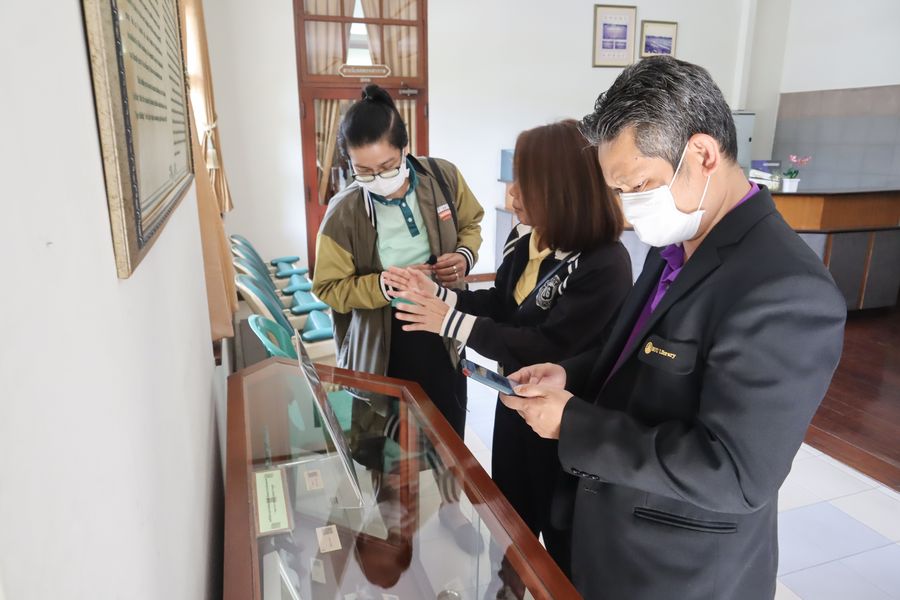 สำนักหอสมุด โดยอาจารย์เหมรัศมิ์ วชิรหัตถพงศ์ ผู้อำนวยการสำนักหอสมุด และบุคลากร