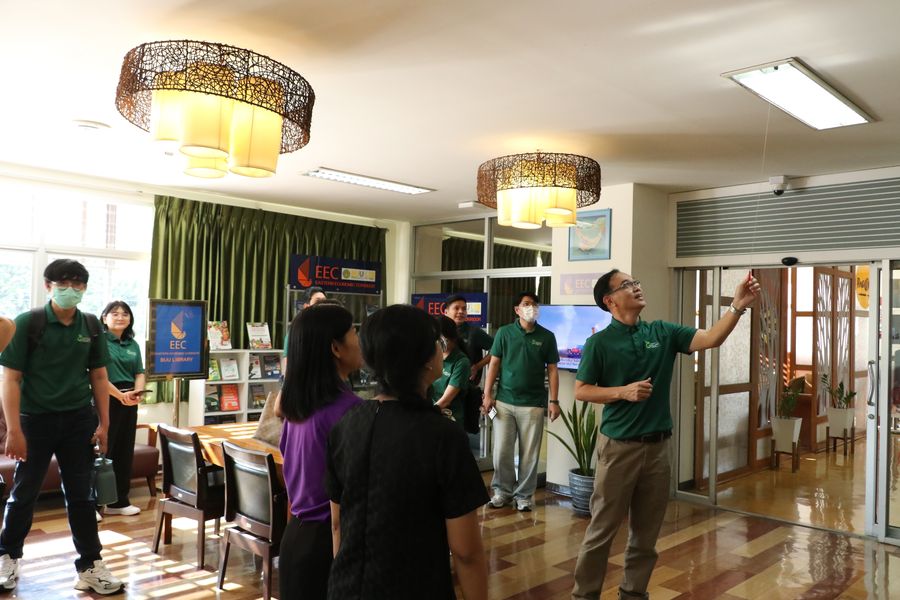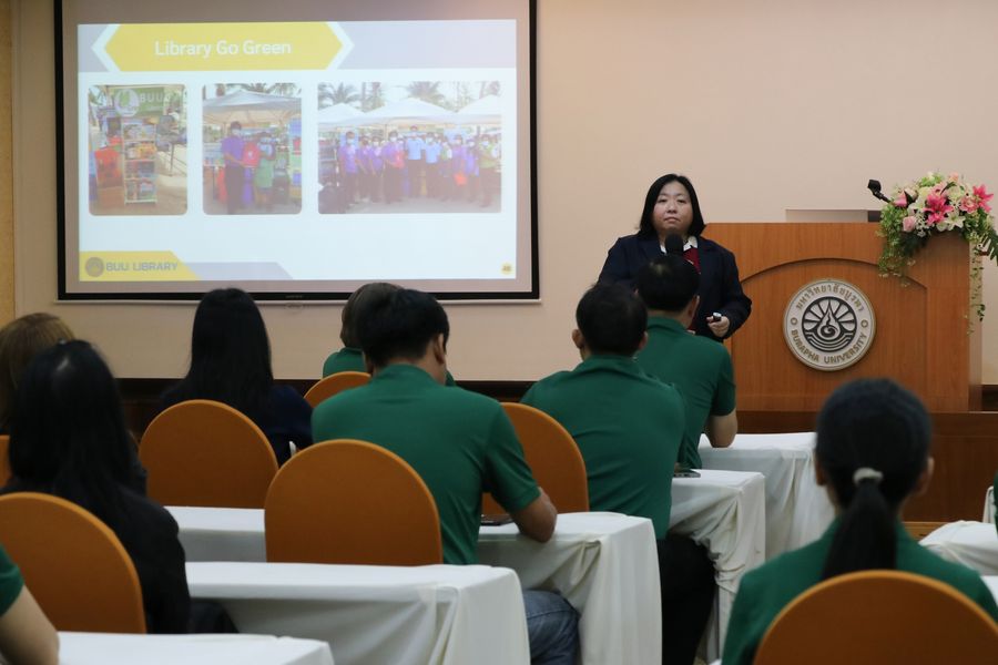 การดำเนินงานห้องสมุดสีเขียวและสำนักงานสีเขียว โดยมีผู้บริหารสำนักหอสมุด