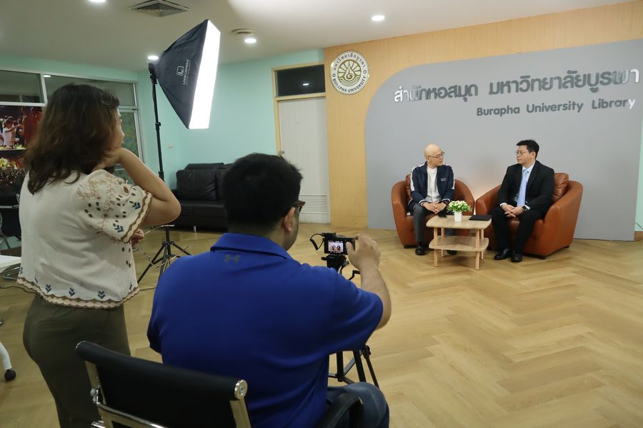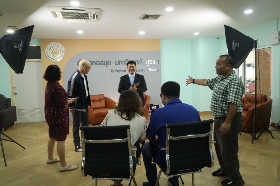อาจารย์เหมรัศมิ์ วชิรหัตถพงศ์ ผู้อำนวยการสำนักหอสมุด ร่วมบันทึกคลิป VDO แลกเปลี่ยน