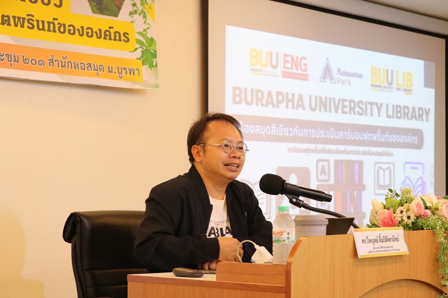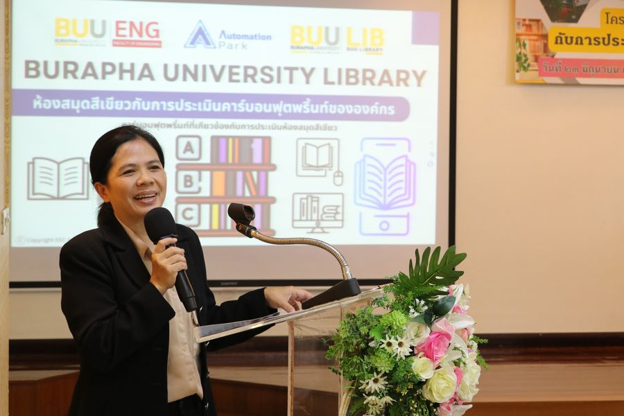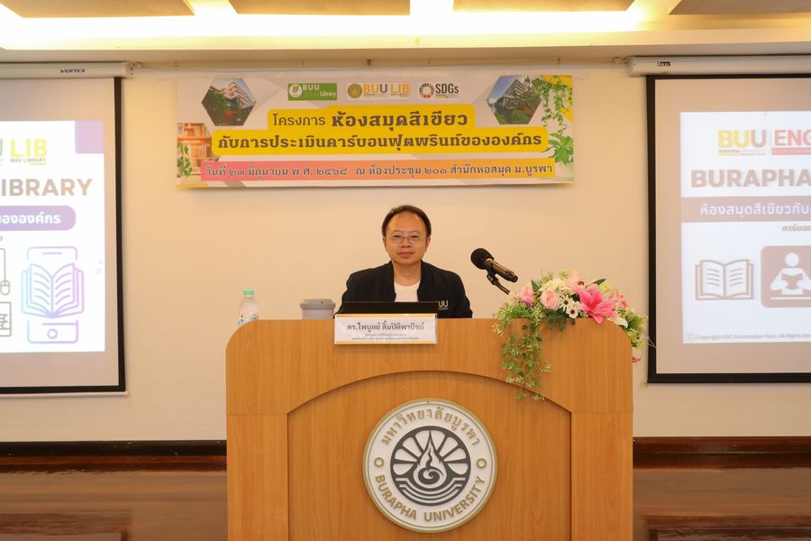 กล่าวเปิดโครงการ “ห้องสมุดสีเขียวกับการประเมินคาร์บอนฟุตพริ้นท์ขององค์กร”