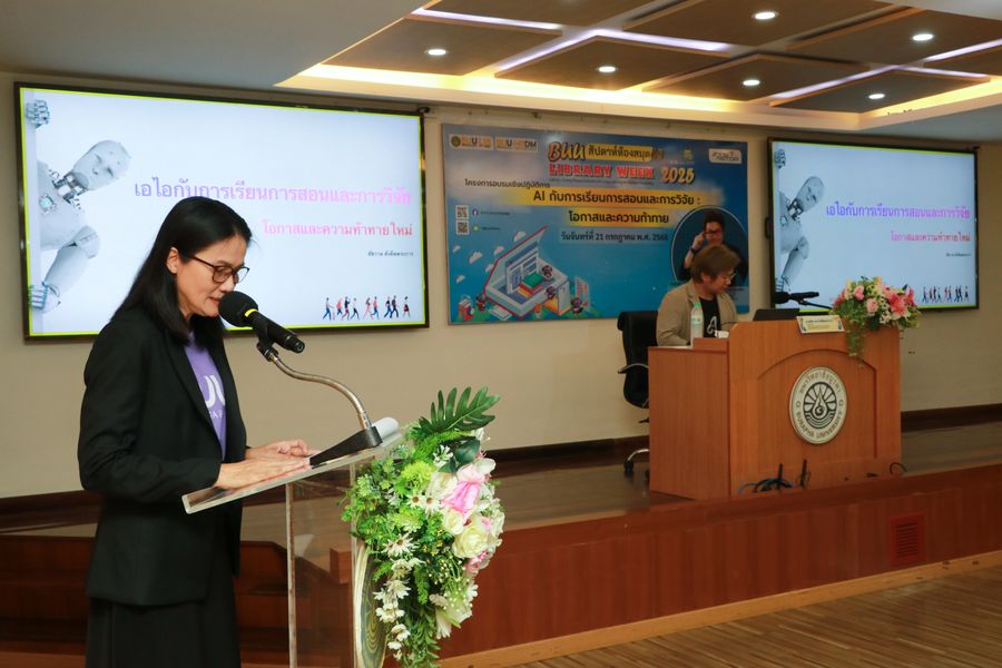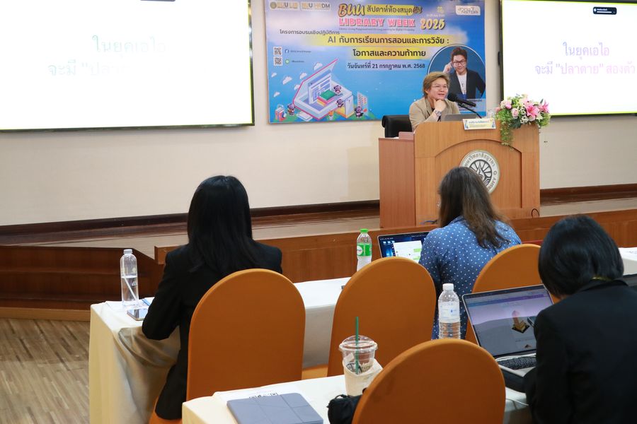 สำนักหอสมุด โดย อาจารย์เหมรัศมิ์ วชิรหัตถพงศ์ ผู้อำนวยการสำนักหอสมุด เป็นประธานกล่าวเปิดงานสัปดาห์ห้องสมุดประจำปี 2568 และเข้าร่วมการอบรมเชิงปฏิบัติการ ภายใต้ความร่วมมือทางวิชาการระหว่างมหาวิทยาลัยบูรพา กับ สำนักงานพัฒนาวิทยาศาสตร์และเทคโนโลยี