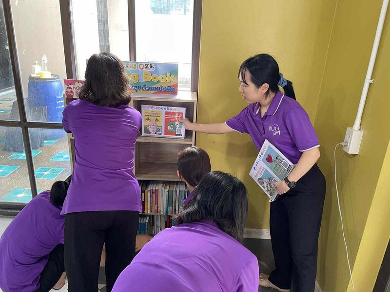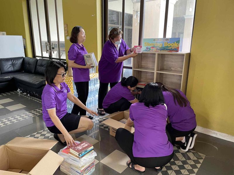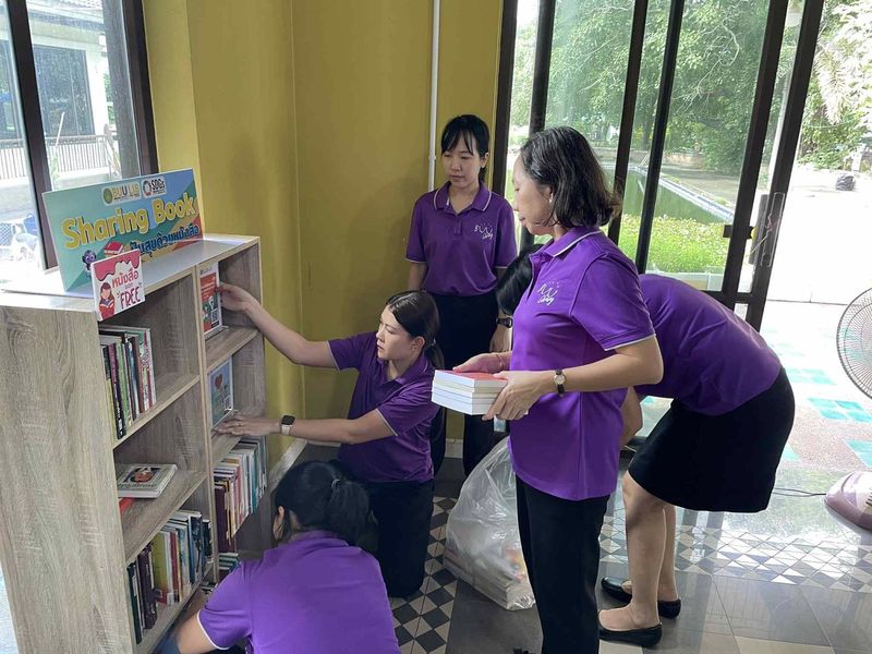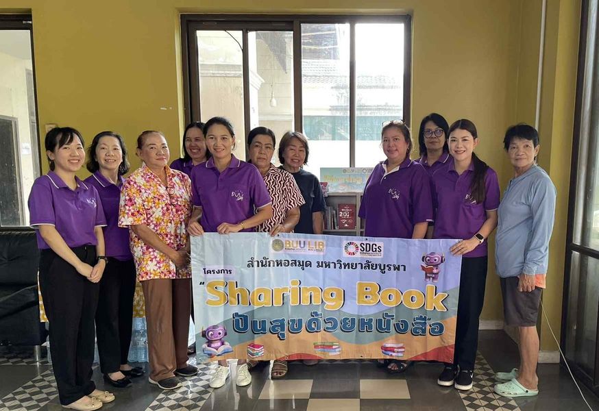 สำนักหอสมุด มหาวิทยาลัยบูรพา จัดโครงการ “Sharing Book ปันสุขด้วยหนังสือ” เพื่อส่งเสริมการอ่านและการเรียนรู้ตลอดชีวิตให้แก่บุคคลทั่วไป ส่งเสริมให้ชุมชนในจังหวัดมีแหล่งเรียนรู้ตลอดชีวิต และสร้างคุณค่าให้กับหนังสือบริจาคโดยส่งมอบให้กับหน่วยงานอื่น ๆ เพื่อใช้ประโยชน์ต่อไป สอดคล้องกับ SDG4 และ SDG17 โดยดำเนินการมอบหนังสือความรู้ด้านต่าง ๆ และหนังสืออิเล็กทรอนิกส์ให้กับชุมชนหน้าเทศบาล โดยมีคุณชิน หนุนดี ประธานชุมชน