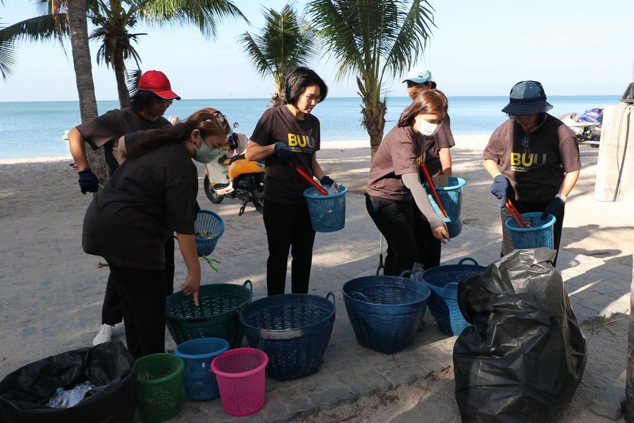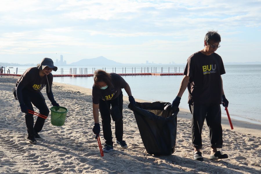 ส่งเสริมให้บุคลากรมีส่วนร่วมกับชุมชนในการดูแลรักษาธรรมชาติและสิ่งแวดล้อม ลดปริมาณขยะและของเสียที่ก่อให้เกิดมลภาวะ และช่วยกันรักษาความสะอาดของชายหาดบางแสน เมื่อวันที่ 4 ธันวาคม 2568 วันสิ่งแวดล้อมไทย