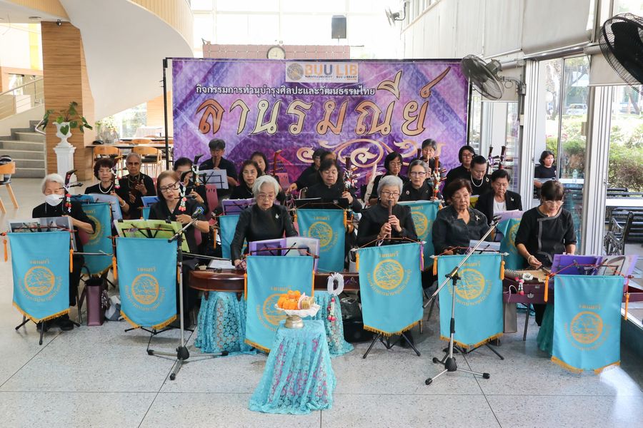 สำนักหอสมุดจัดกิจกรรมการบรรเลงและขับร้องดนตรีไทย โดยชมรมข้าราชการบำนาญจังหวัดชลบุรี ได้มาร่วมถ่ายทอดและแสดงดนตรี เป็นการอนุรักษ์ดนตรีไทย กิจกรรมที่ปลูกฝังและสร้างแรงบันดาลใจ ตลอดจนสร้างทัศนคติที่ดีให้แก่นิสิตในการอนุรักษ์ดนตรีไทยอันเป็นมรดกทางวัฒนธรรมที่สำคัญของประเทศให้คงอยู่สืบไป เมื่อวันที่ 23 ธันวาคม พ.ศ. 2568 ณ ห้องโถงนิทรรศการ ชั้น 1 สำนักหอสมุด มหาวิทยาลัยบูรพา