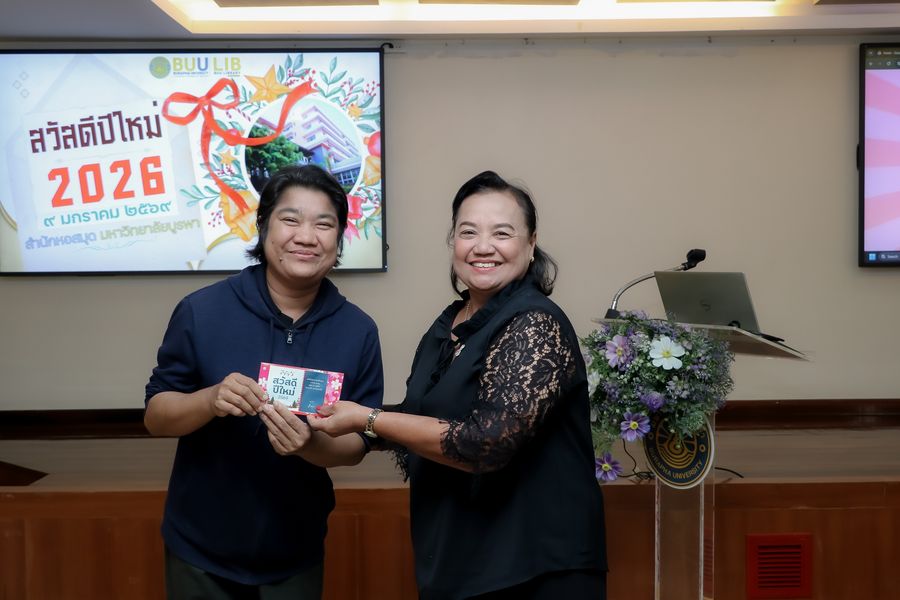 พร้อมรับประทานอาหารกลางวันร่วมกัน โดยภายในงานยังมีการแลกของขวัญระหว่างบุคลากร และลุ้นรับรางวัลพิเศษ เมื่อวันที่ 9 มกราคม พ.ศ. 2569 ณ ห้องประชุม 201 ชั้น 2 สำนักหอสมุด